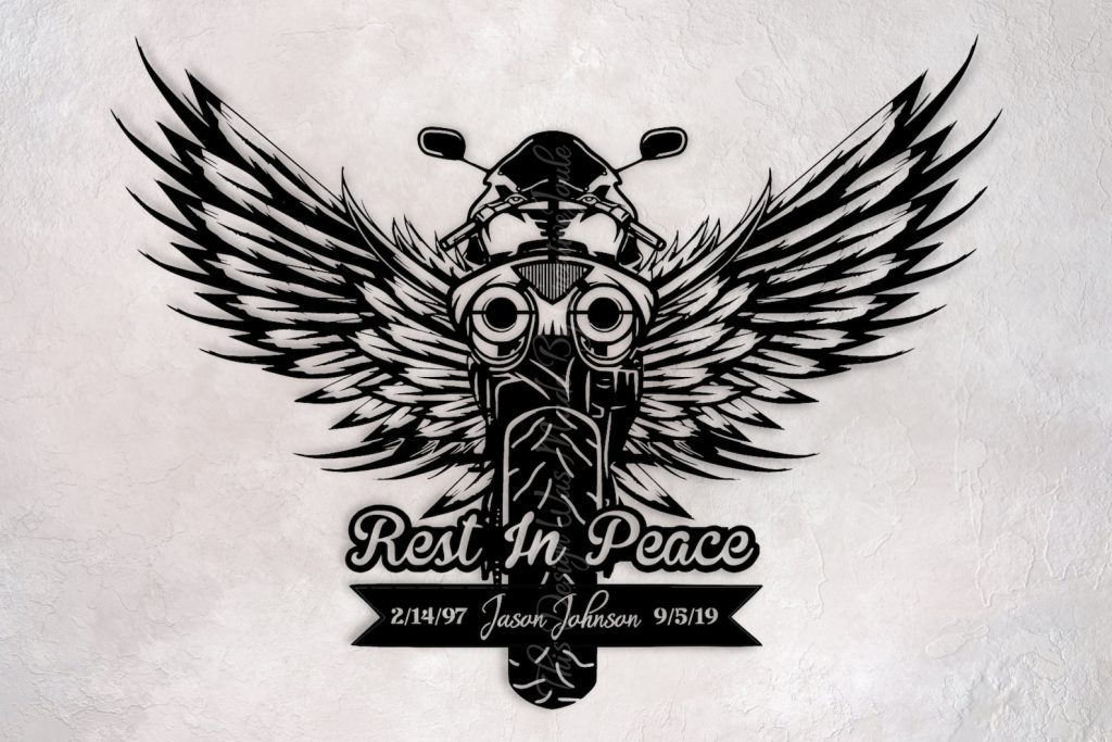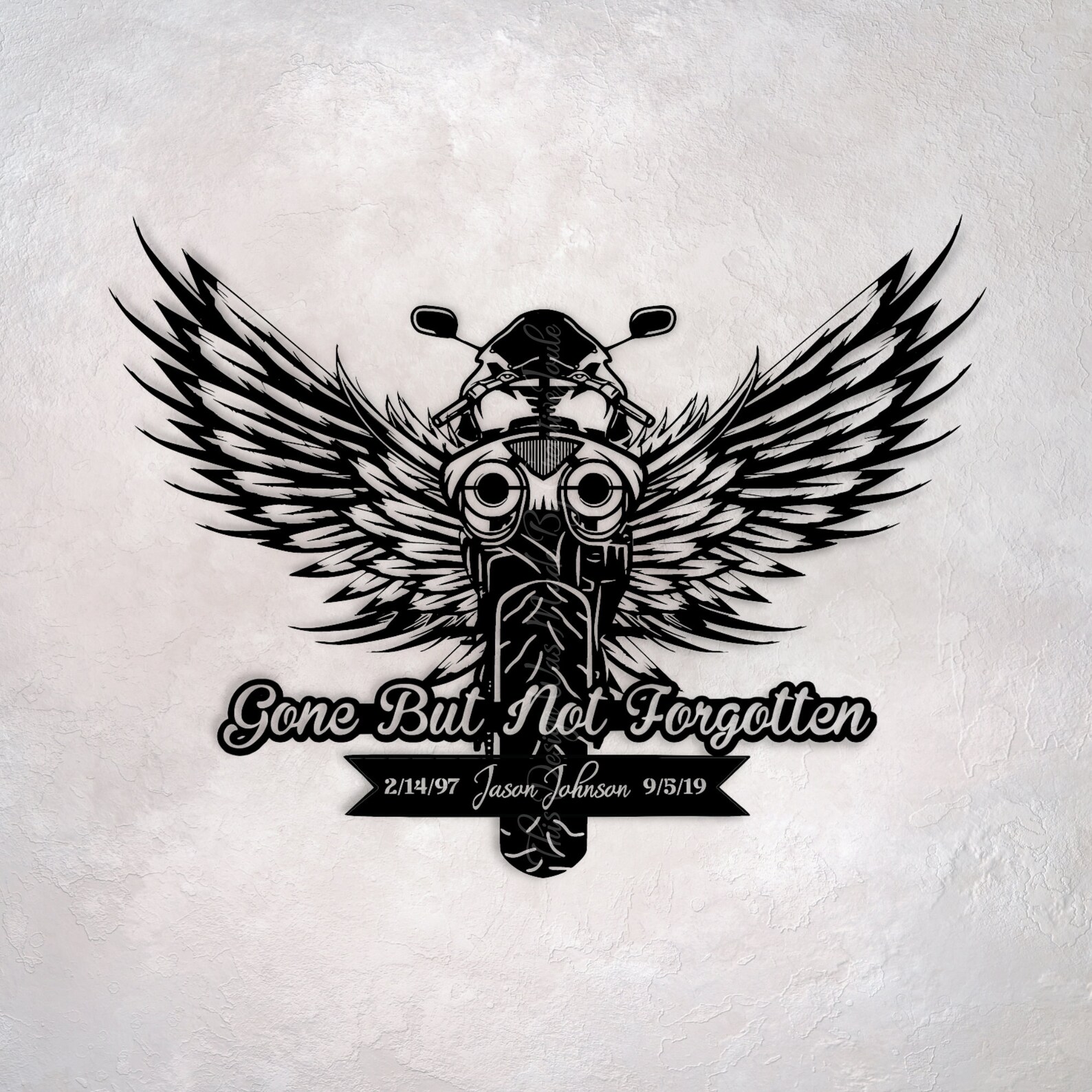 Customizable Metal Motorcycle with Angel Wings – Loving Memory Memorial Gift