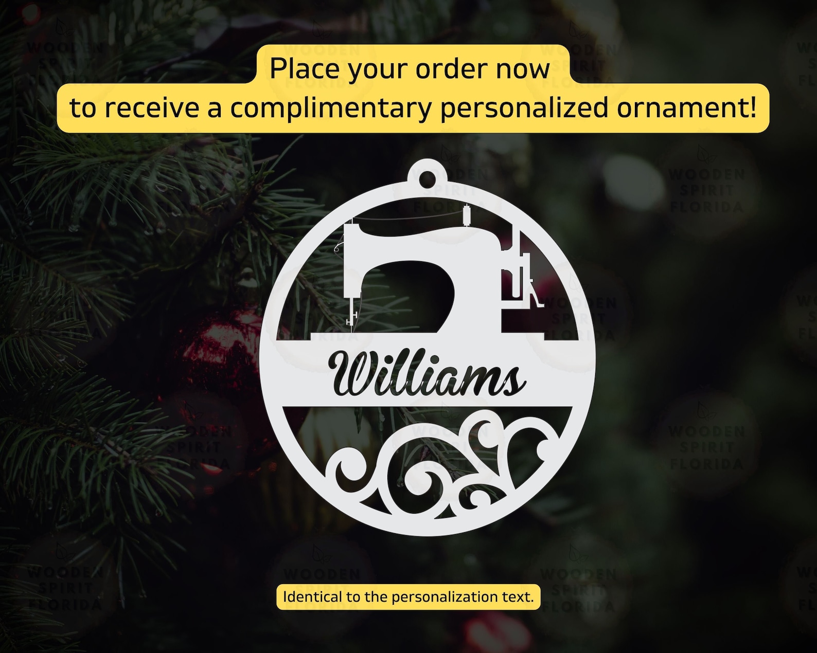 Complement your purchase with a FREE ornament, tailored to match the personalized text of your order.