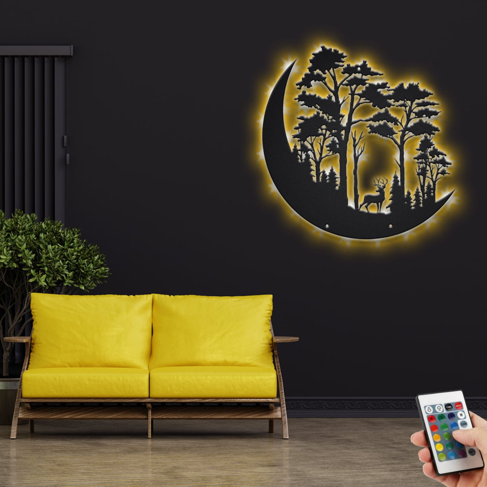 Be the first to review “Deer Moon Forest Metal Art with LED Light”