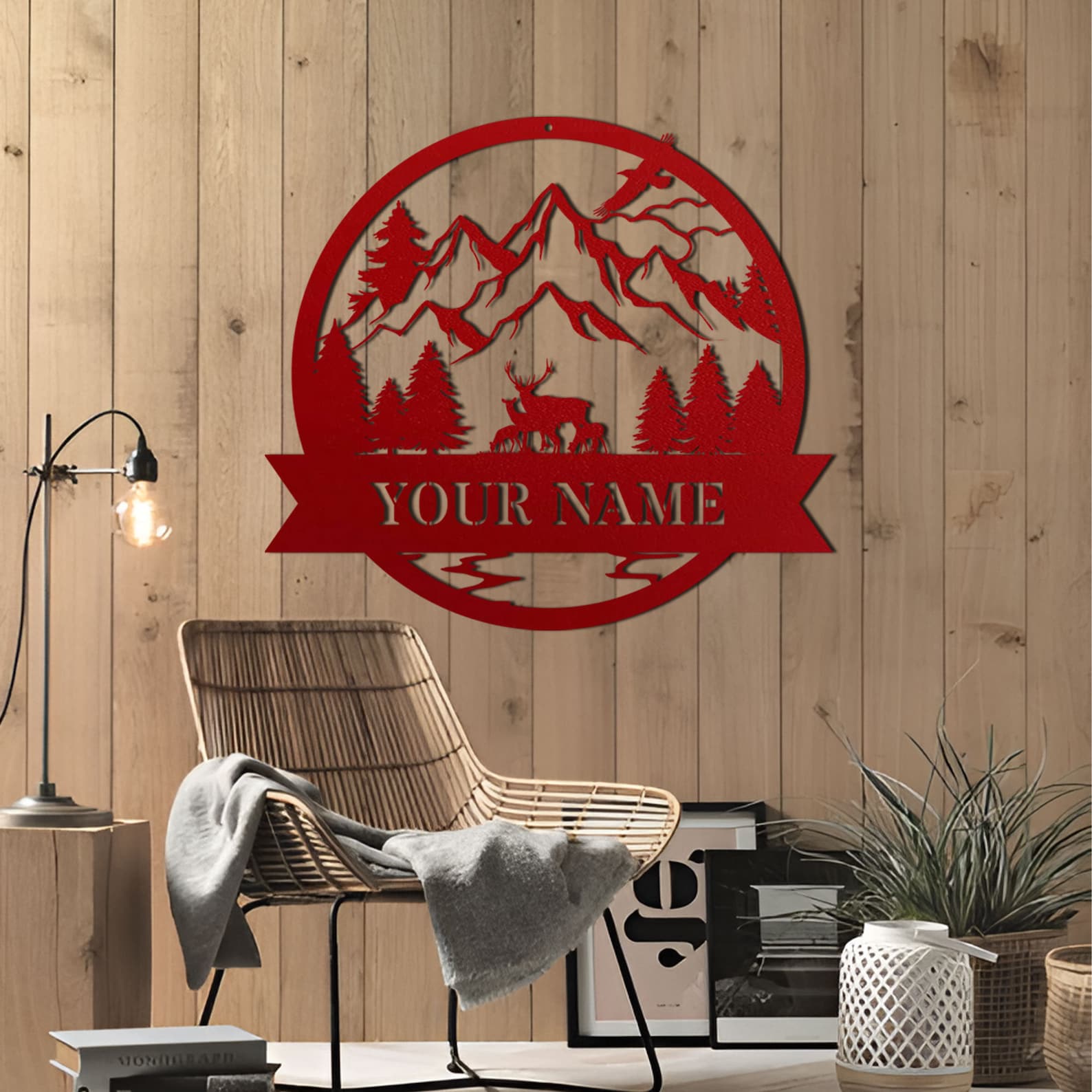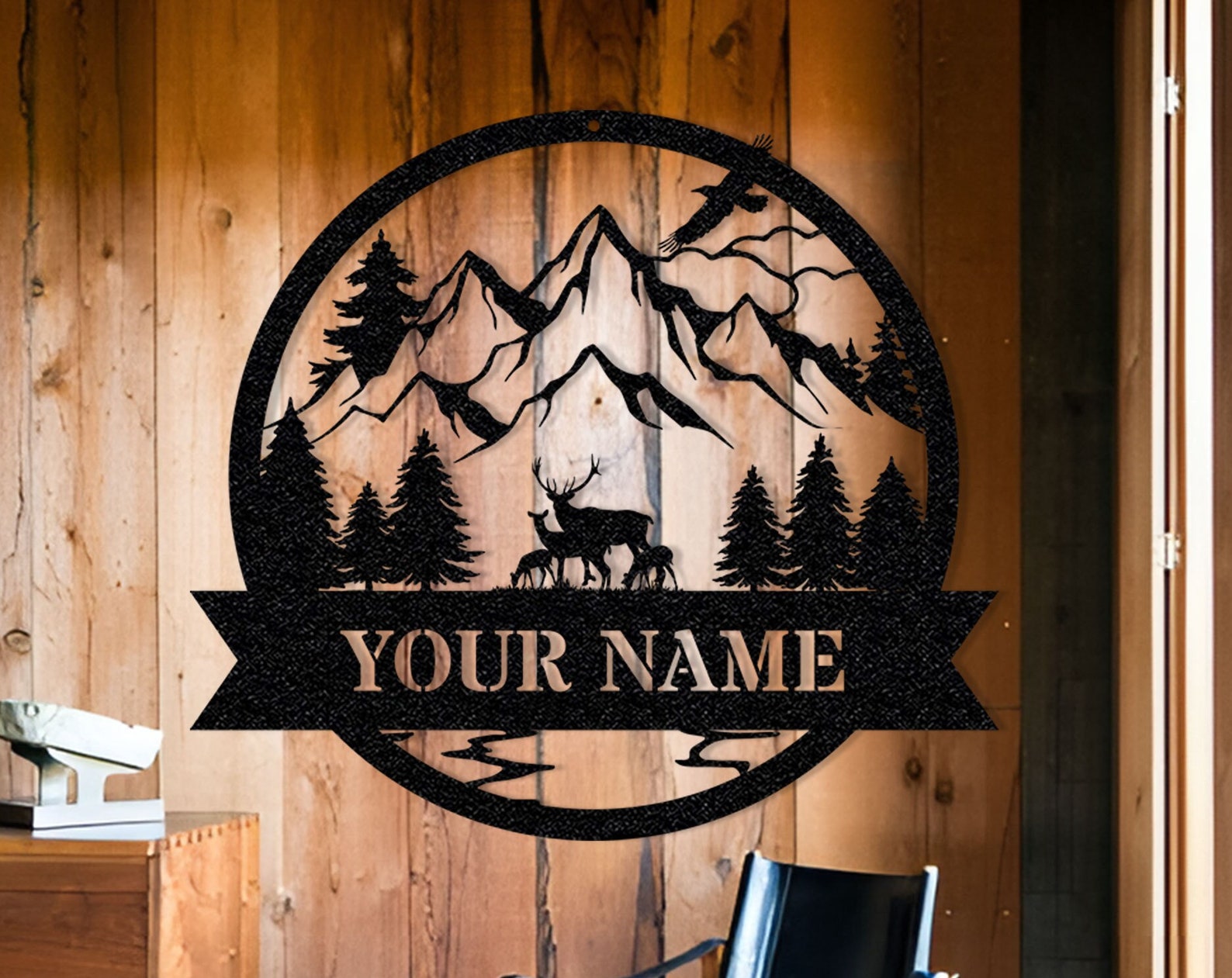 Deer Sign,Deer Antler Decor,Deer Hunter Gift,Deer Camp Sign,Christmas Gift For Him,Deer Name Metal Sign,Wedding Monogram,Fathers Day Gift