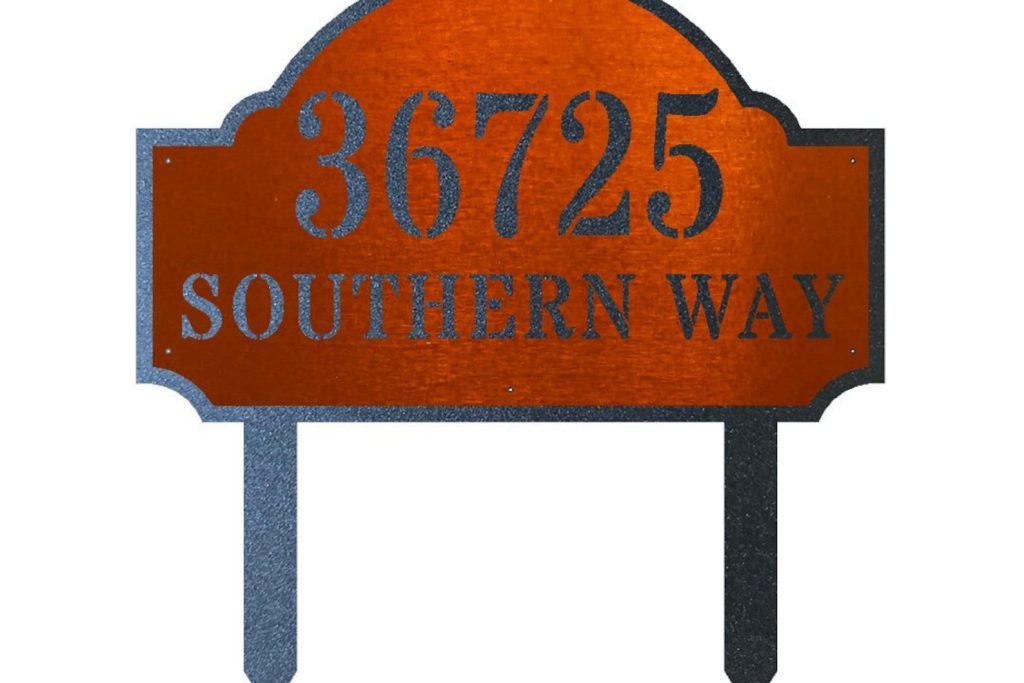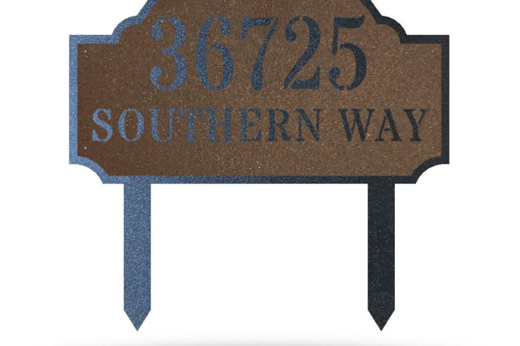 This Beautiful Customized Deluxe Address Sign is constructed of 16 gauge steel on a Fiber Laser and then Powder Coated to give this item a one of a kind, unique finish.