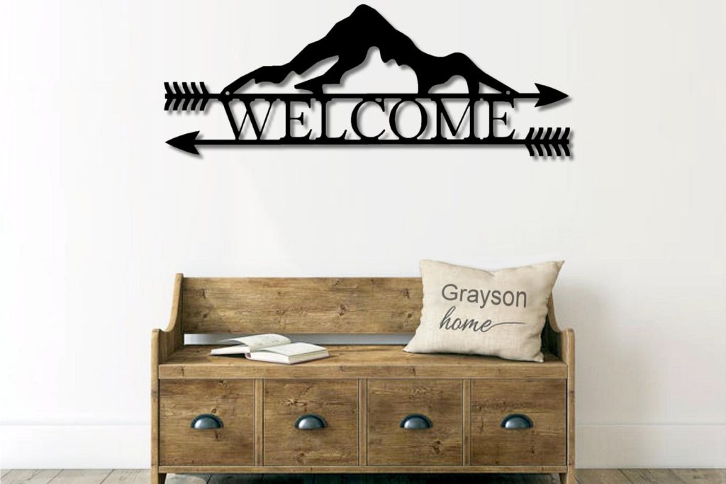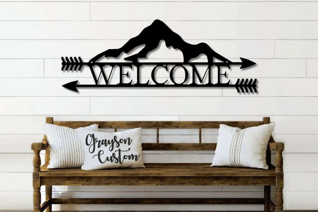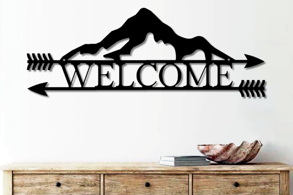 Double Arrow Mountain Metal Welcome Sign – Rustic Decor