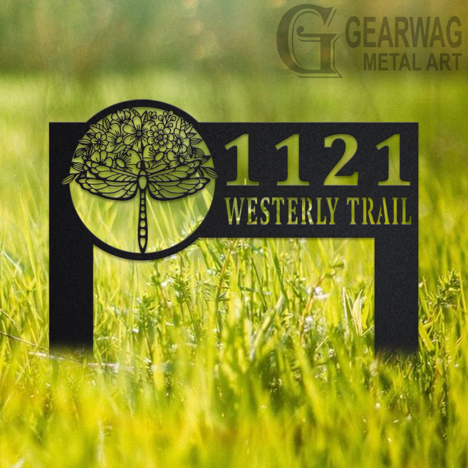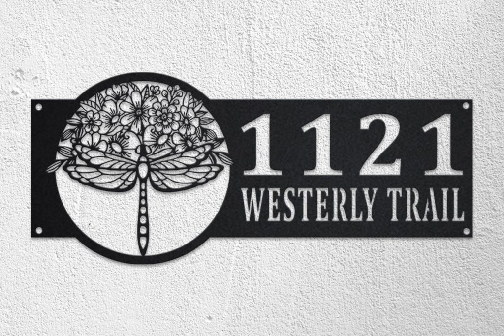 Dragonfly Address Sign – Custom Metal Plaque Decor