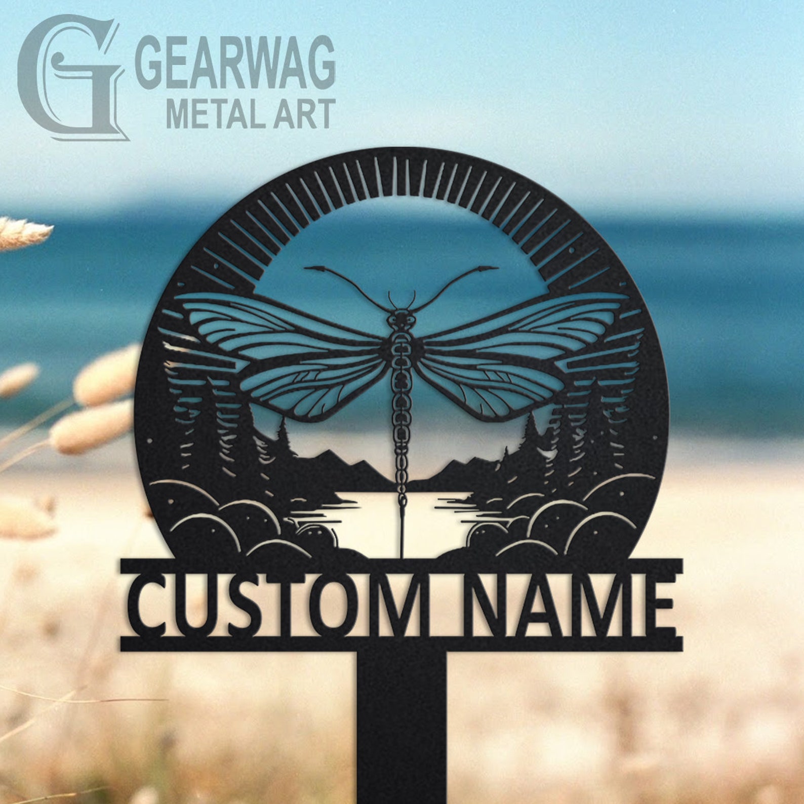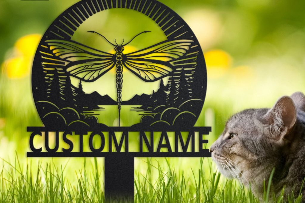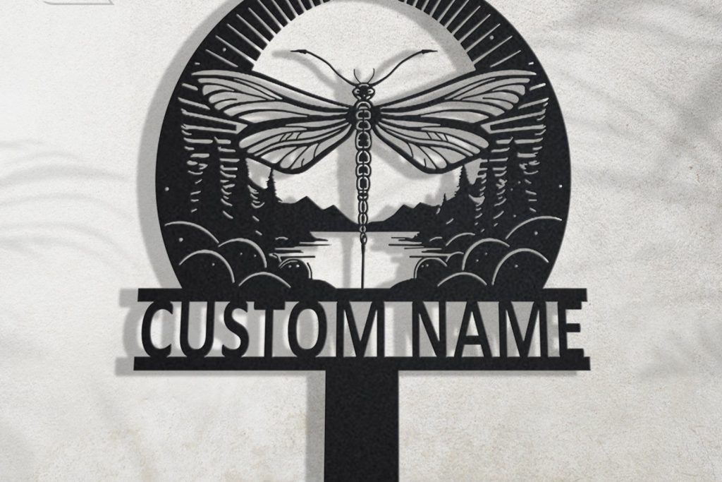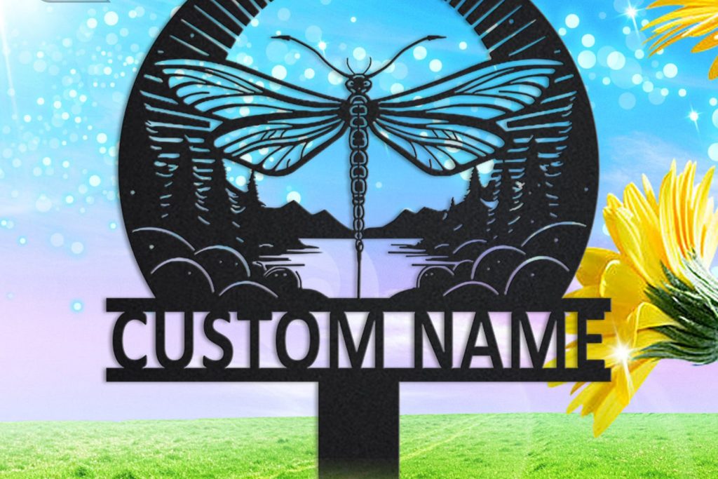 Dragonfly Garden Sign – Custom Metal Floral Stake