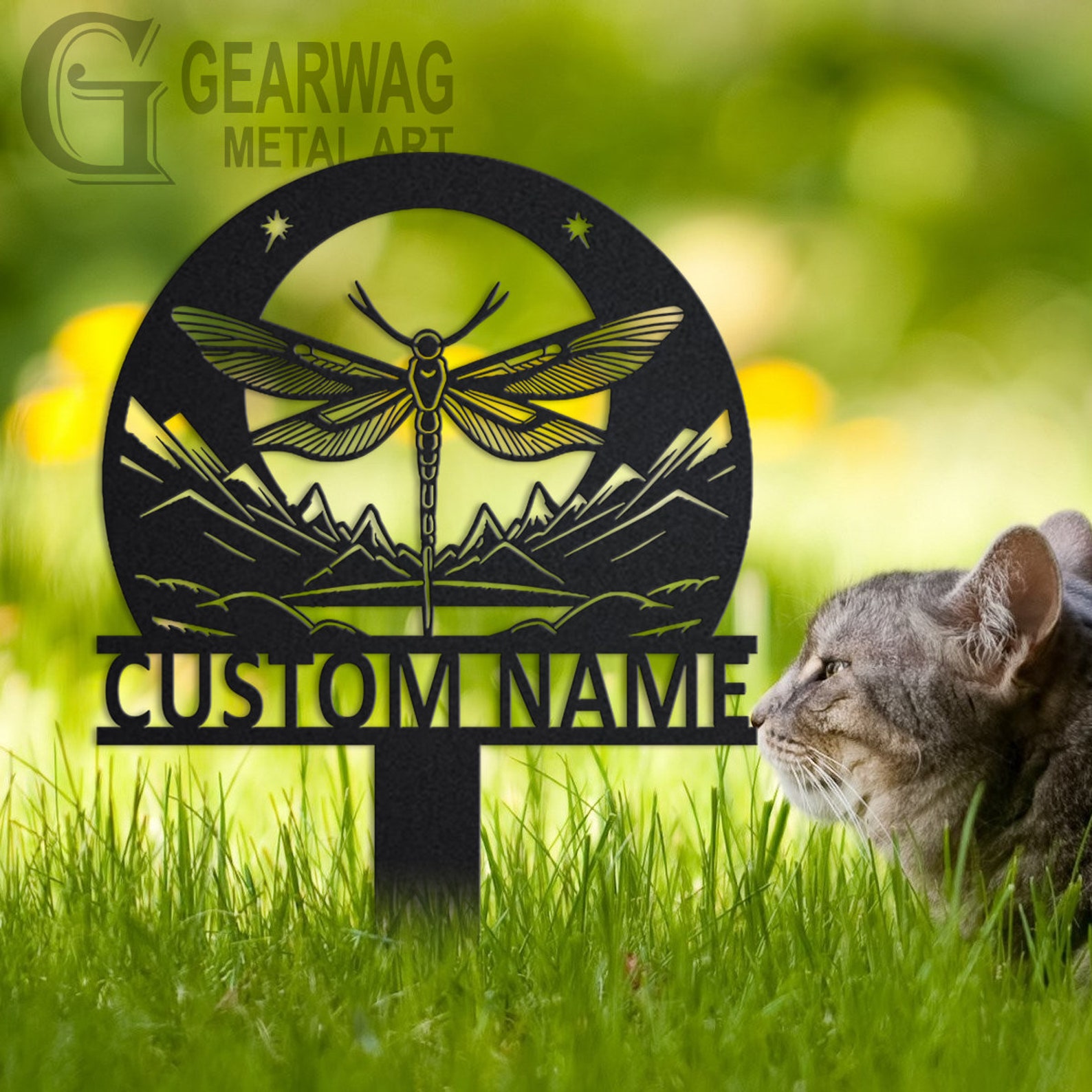 Dragonfly Garden Sign – Custom Metal Flower Stake