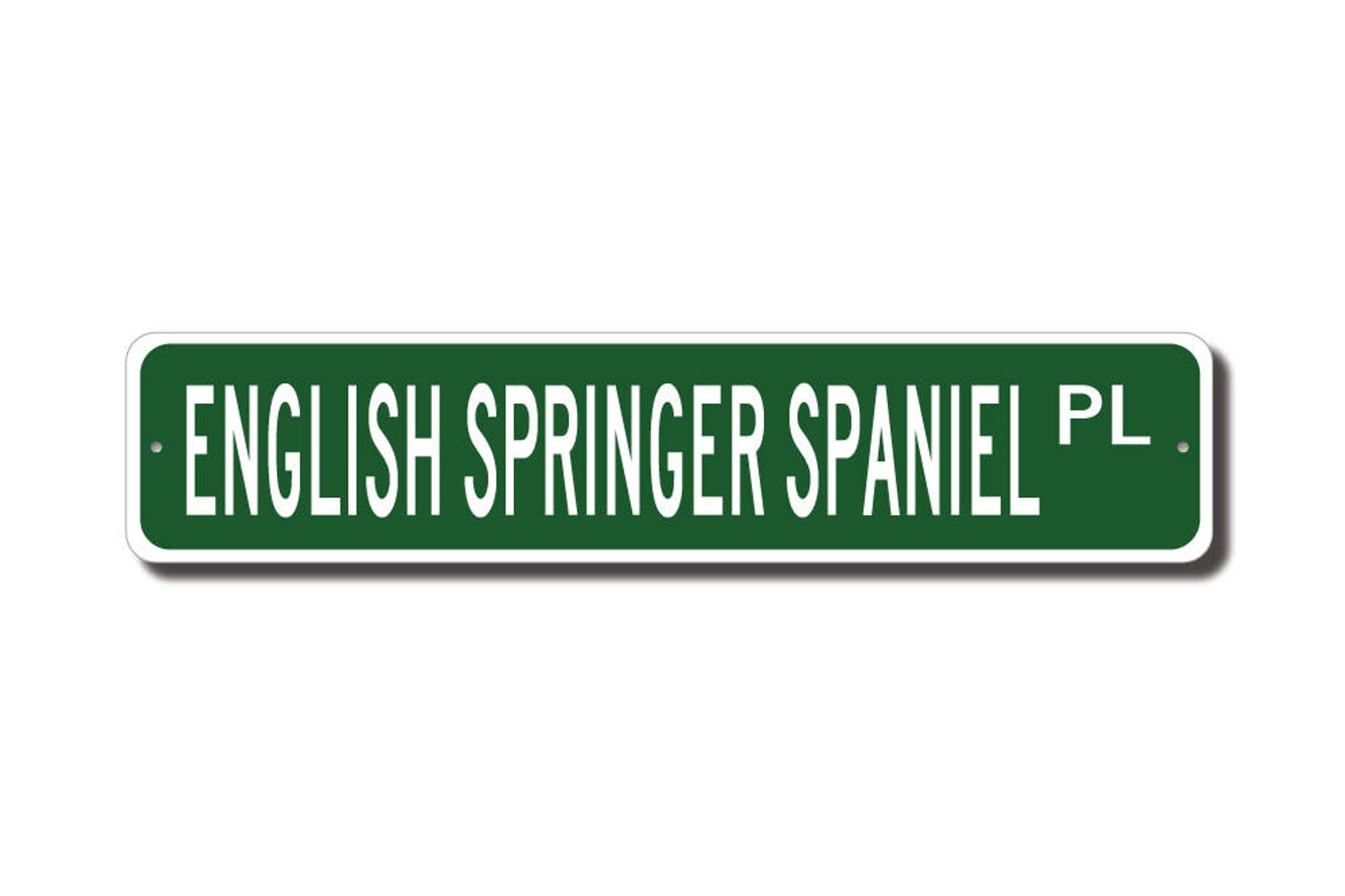 English Springer Spaniel lovers check out this awesome street sign! This will make the perfect piece for any English Springer Spaniel lover or English Springer Spaniel cave. Made of premium aluminum it will stand the test of time. This sign will look great in any room, garage, barn or office! Get this sign for your favorite friend that loves a English Springer Spaniel!