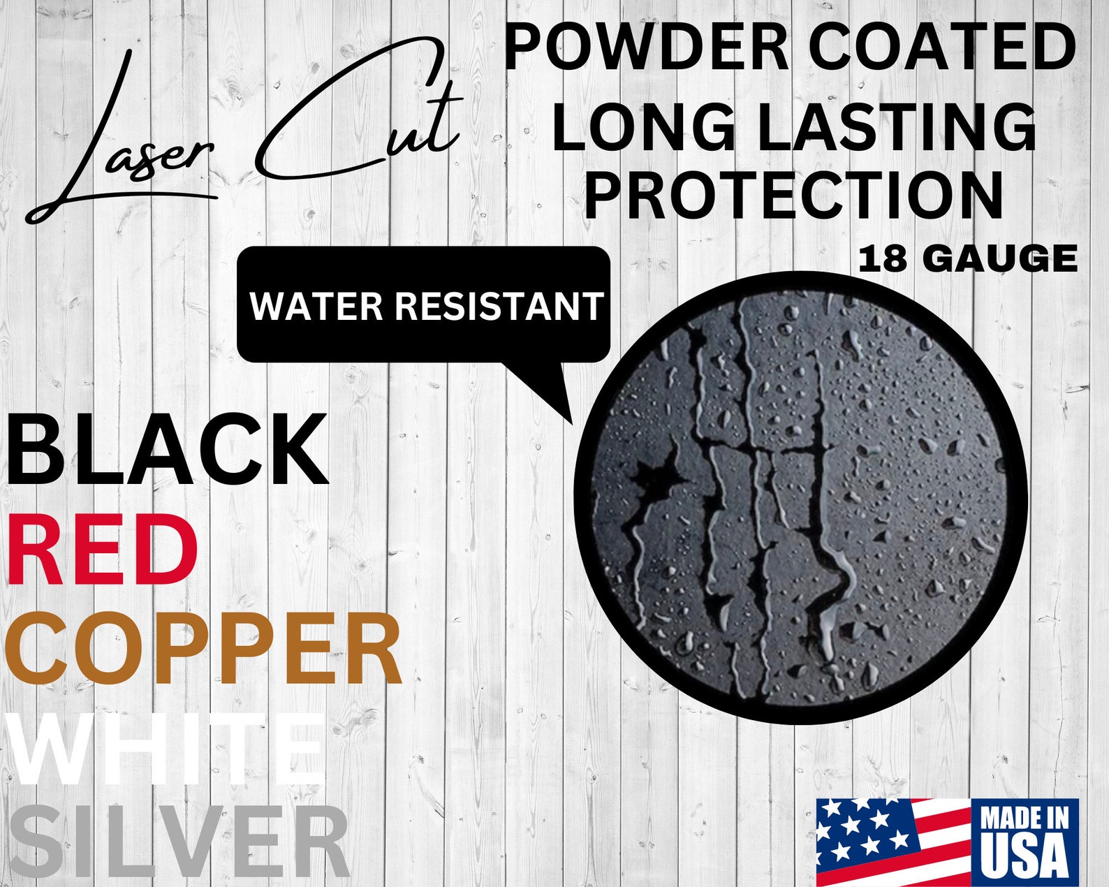 Beautiful Personalized metal signs are made from 18 gauge cold rolled steel, which is a sturdy and durable material that can withstand the natural elements. They are professionally laser cut with top of the line laser technology for precise cuts on designs.