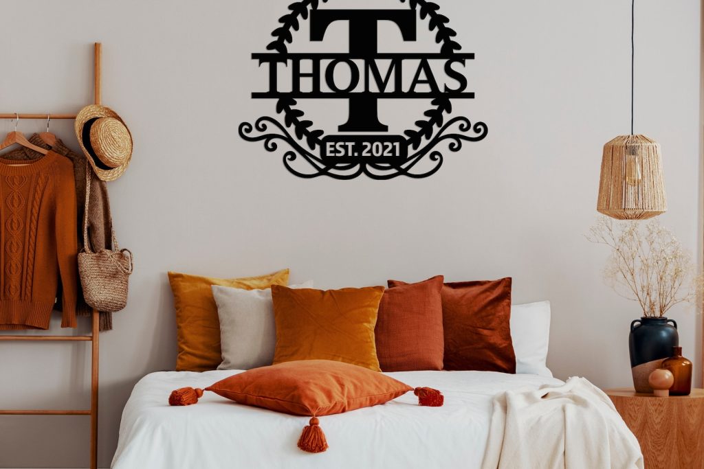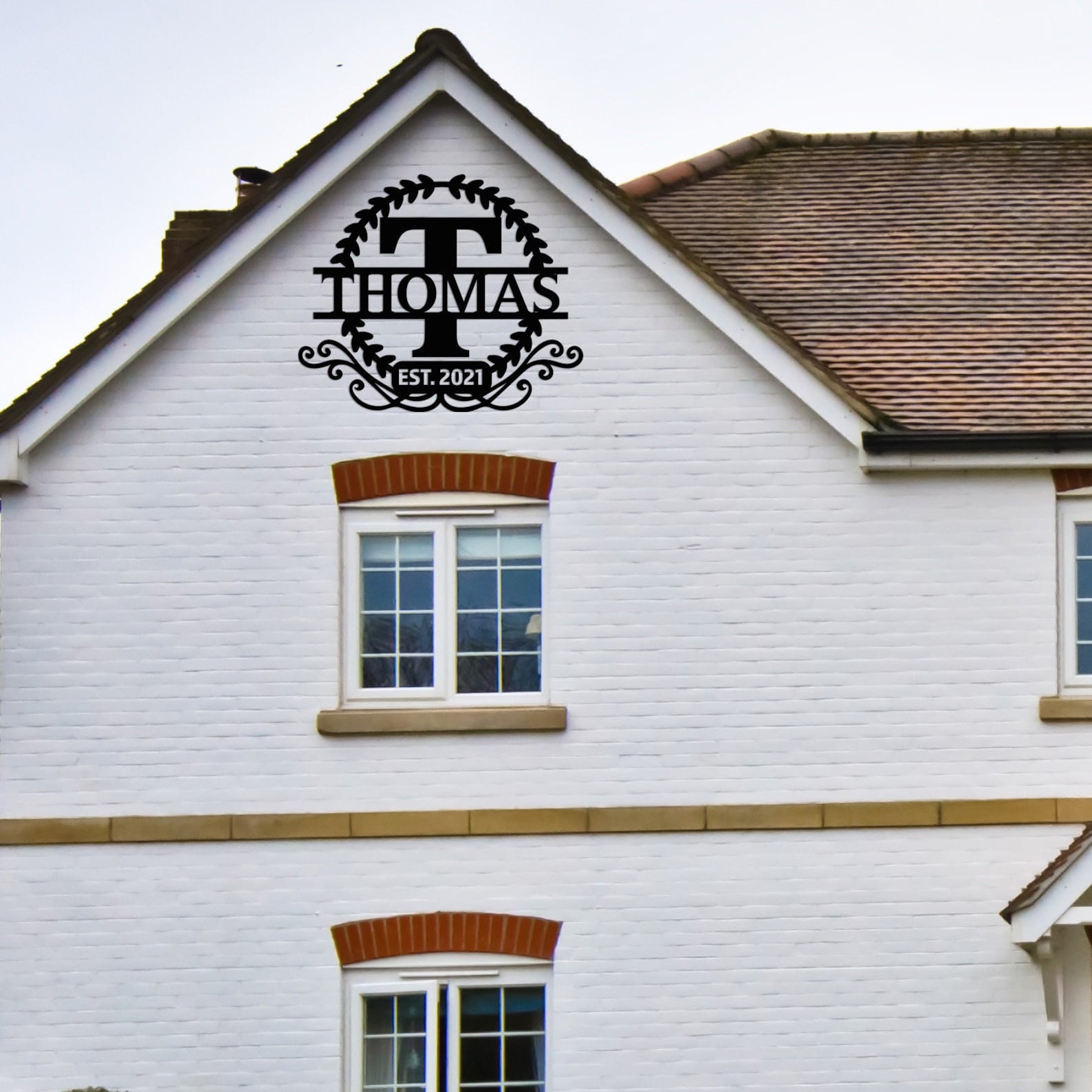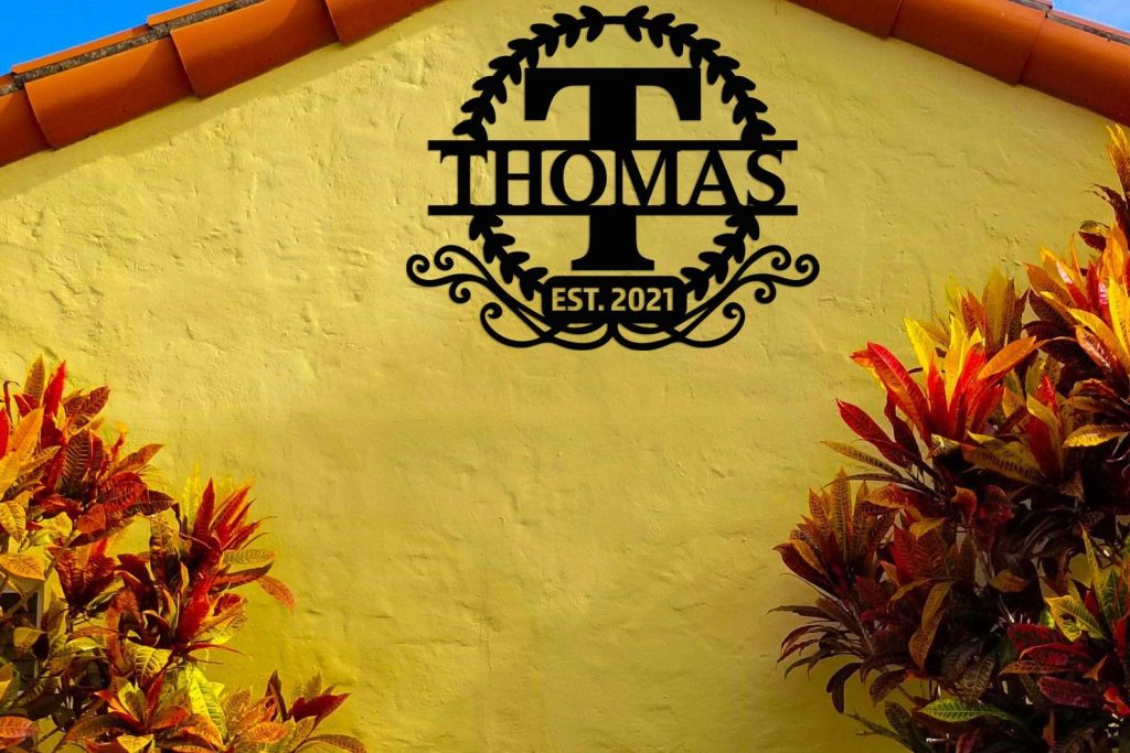 It9;s a great way to show off your family name in an elegant way! You can customize it with any family name, business name, house number, full address or any text. This sign is made from metal and coated with high-quality electrostatic powder coating. So it will last for many years without rusting or fading in the sun. It9;s also easy to hanging to wall.