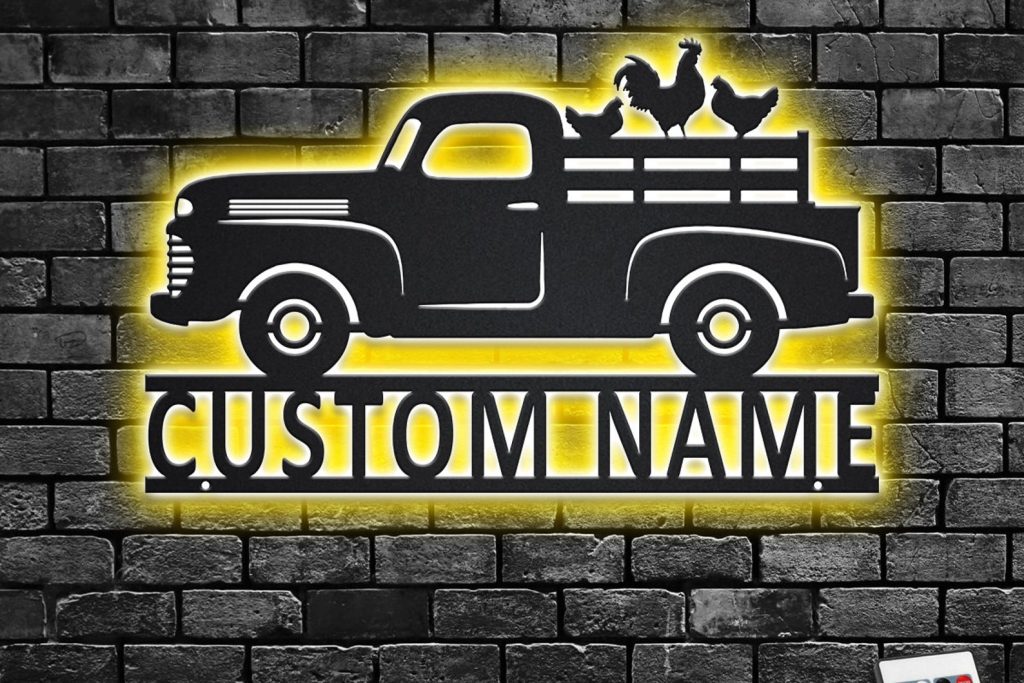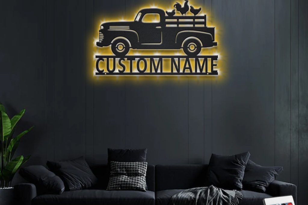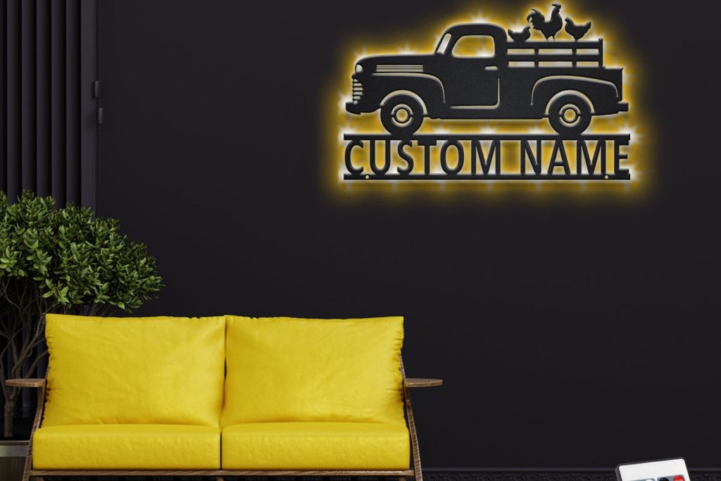 Farm Truck Art – LED Personal Name Sign, Room Decor