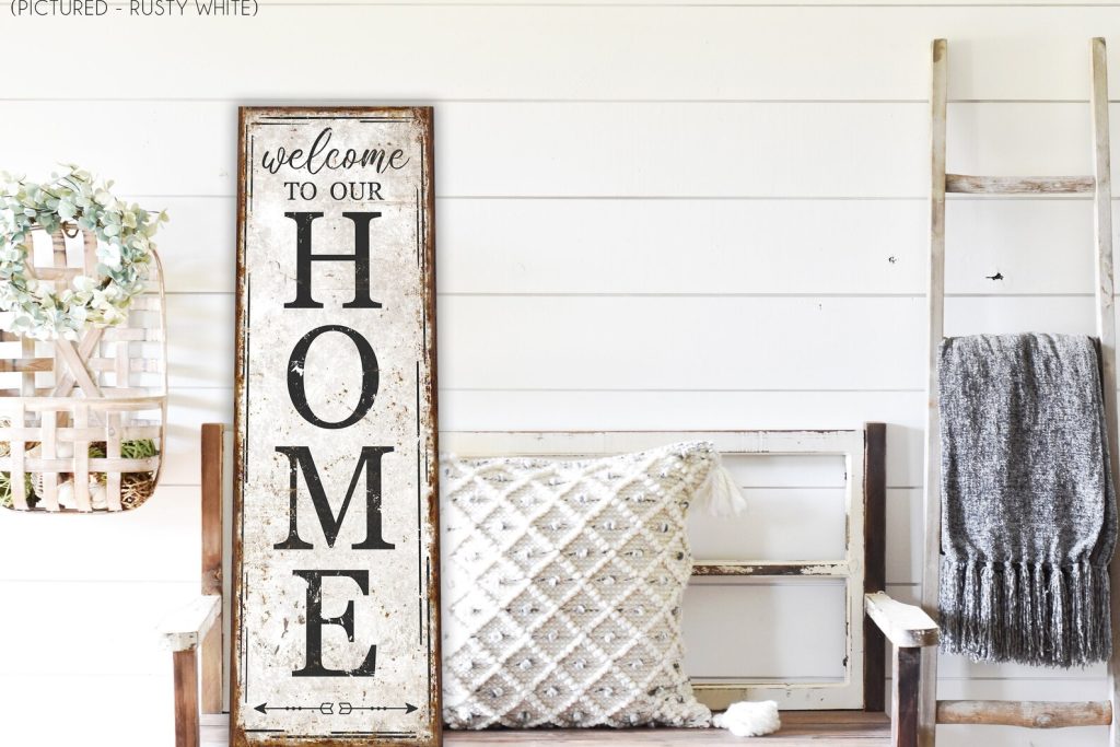 Be the first to review “Farmhouse Welcome Vertical Metal Sign for Front Door”