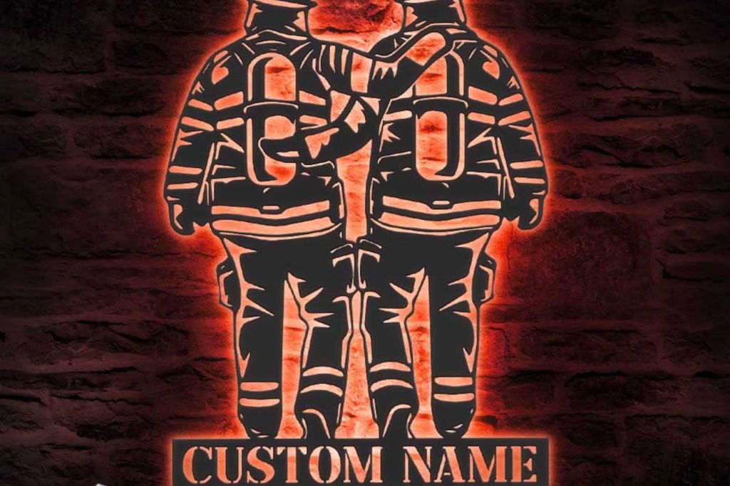 Be the first to review “Father & Son Firefighter Sign, LED Light”