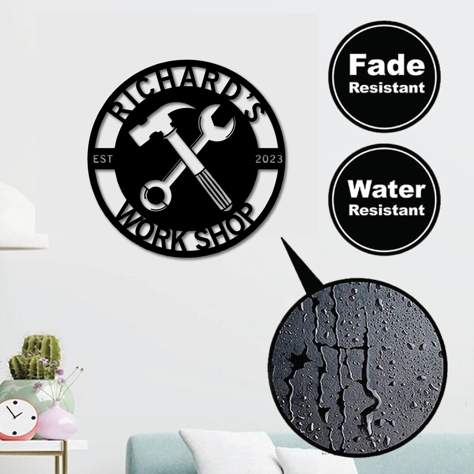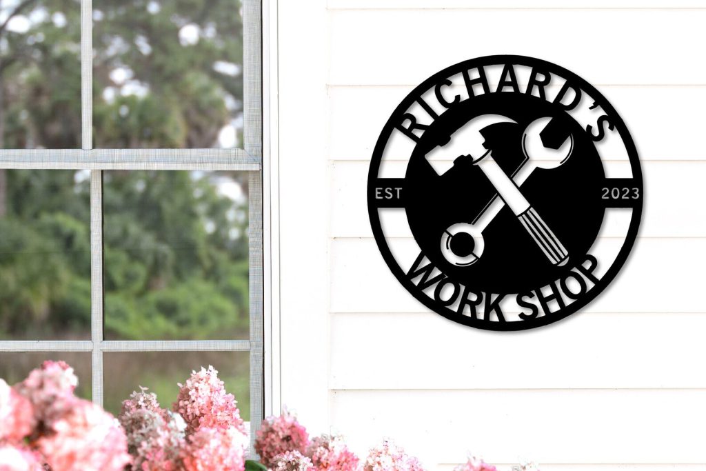 Be the first to review “Father’s Day Metal Sign, Papas Workshop Decor”