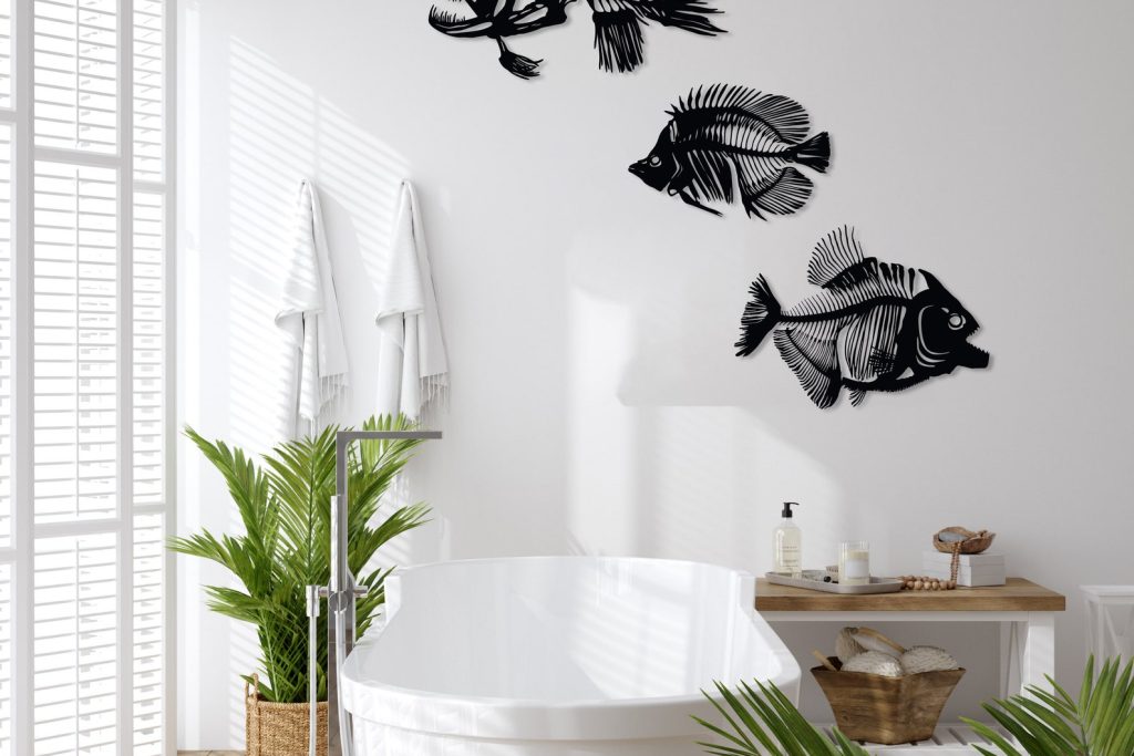ish Metal Wall Art, Fishbones Wall Decor, School of Fish Decor, Fish Skeleton Decor, Bathroom Decor, Nautical Gift Wall Sign, Interior Decor