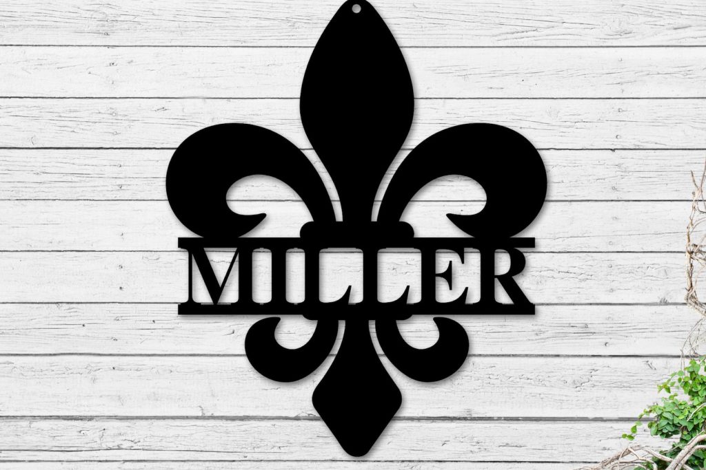 Fleur De Lis Metal Sign, Custom Family Name, Housewarming Gift