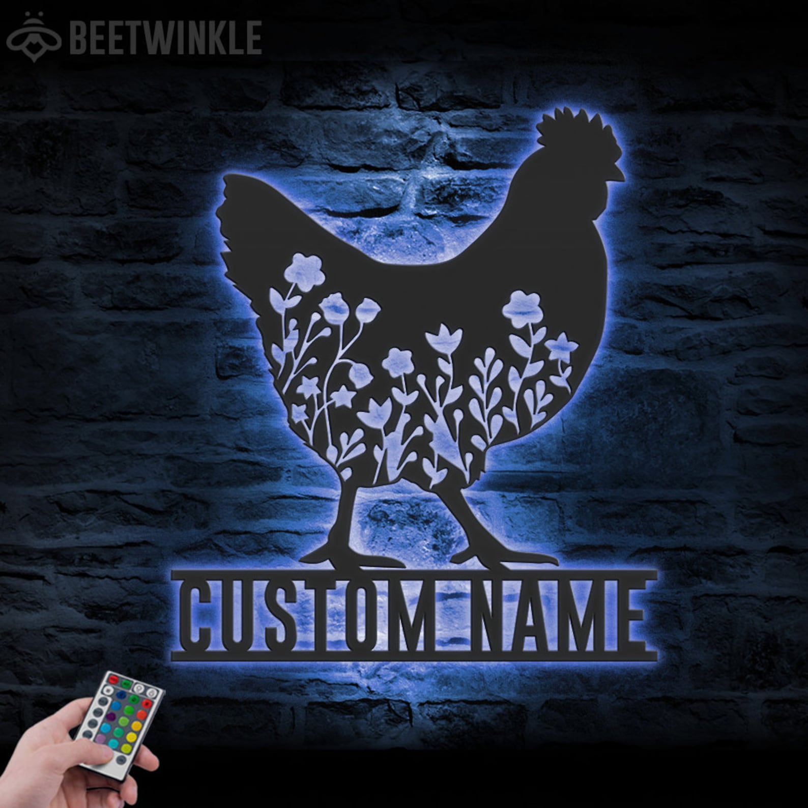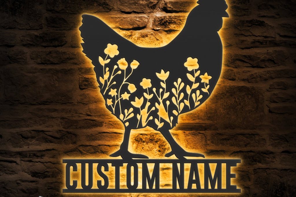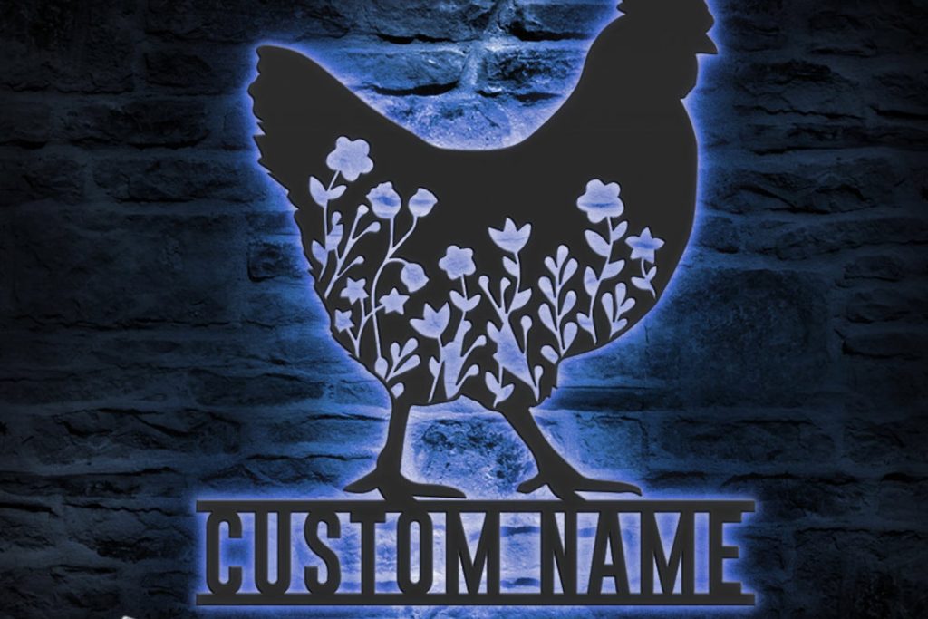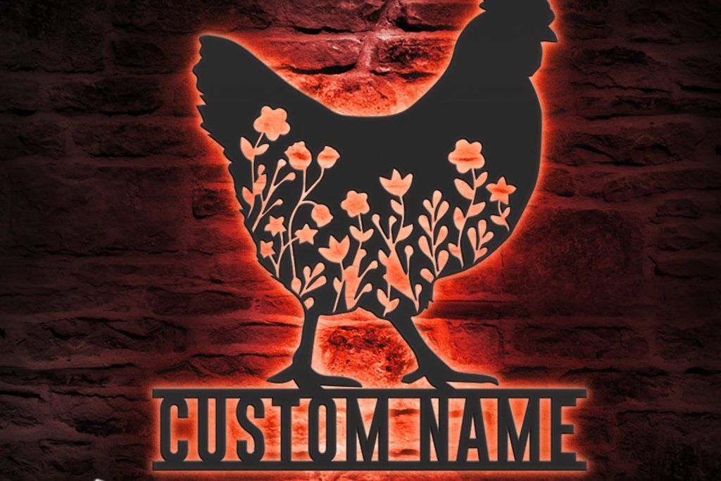 Be the first to review “Floral Chicken Art – Personalized Metal LED Coop Wall Decor”