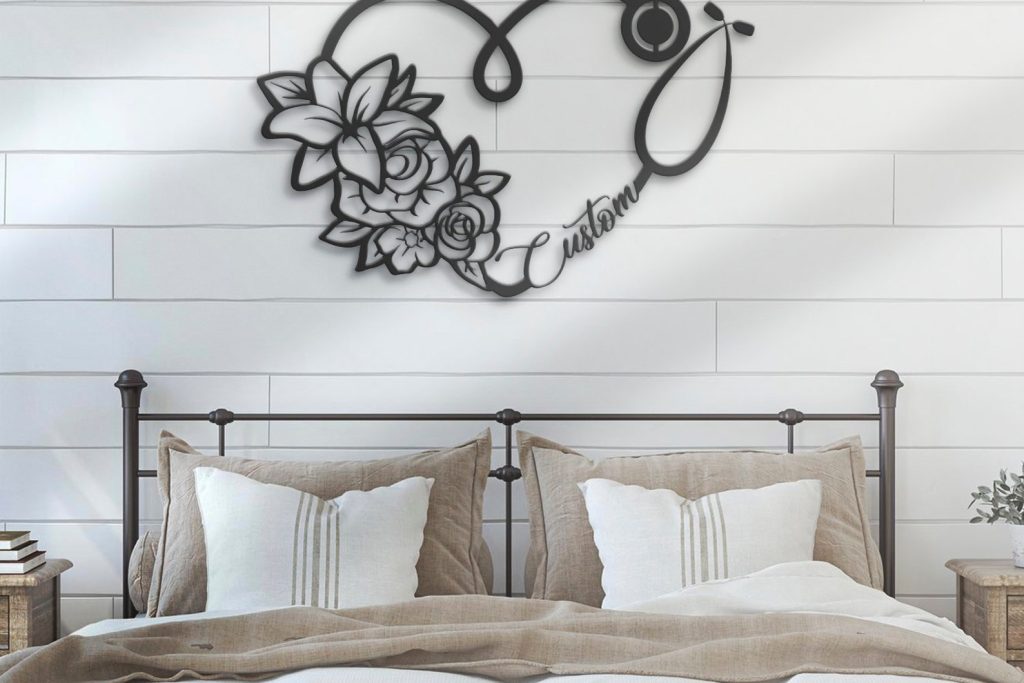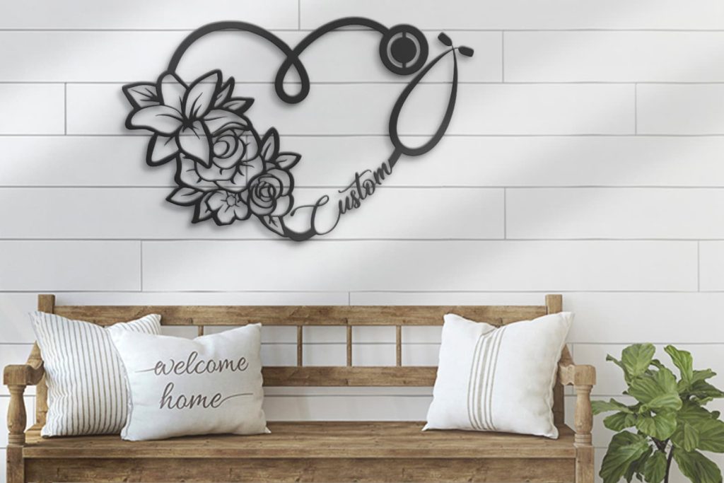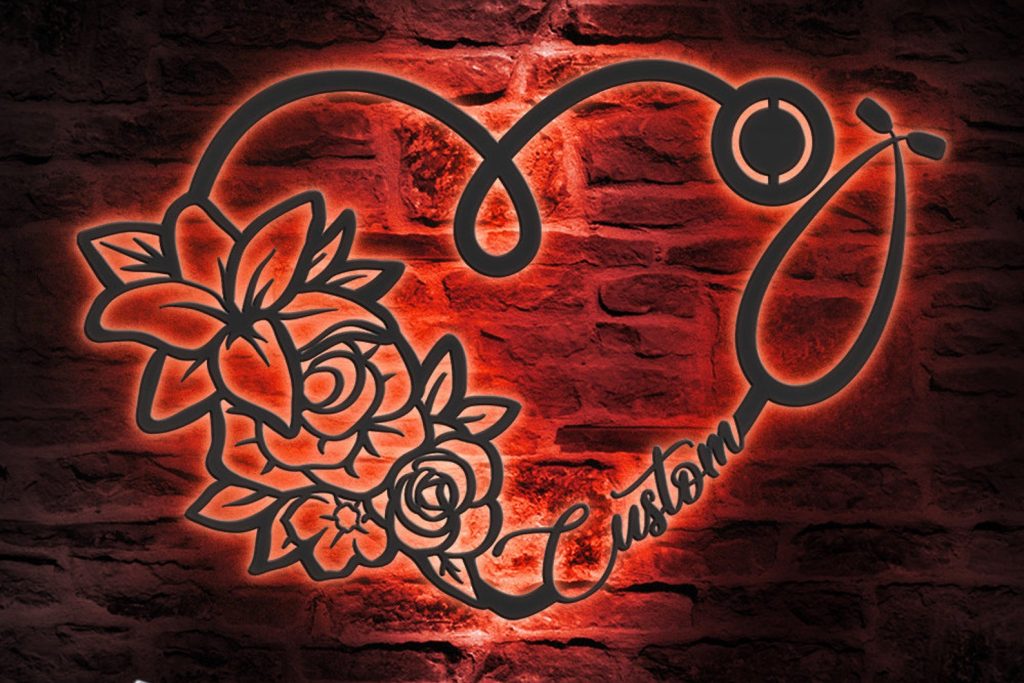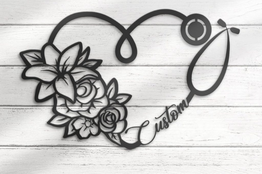 Be the first to review “Floral Heart Sign, Nurse Name Sign, Metal Art”