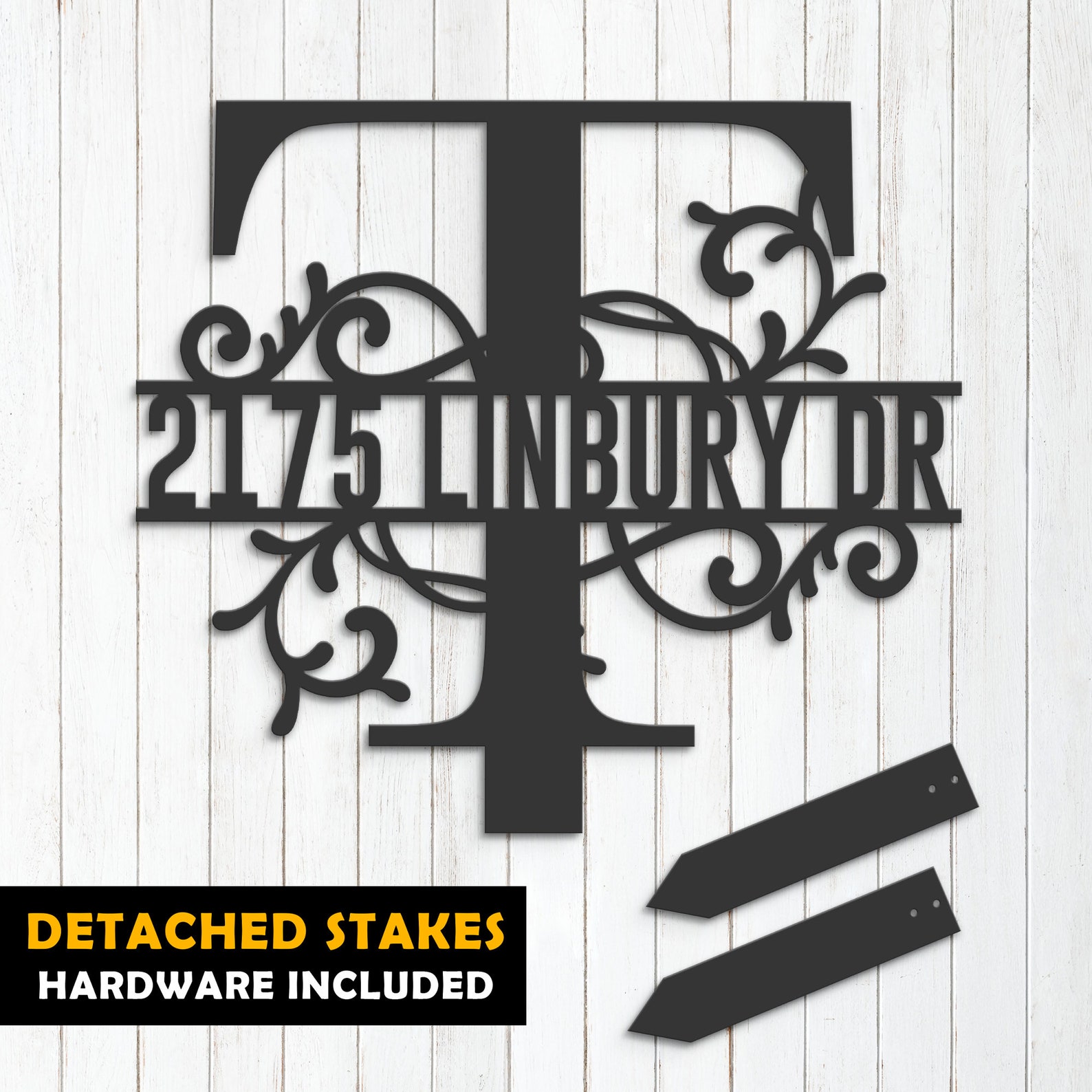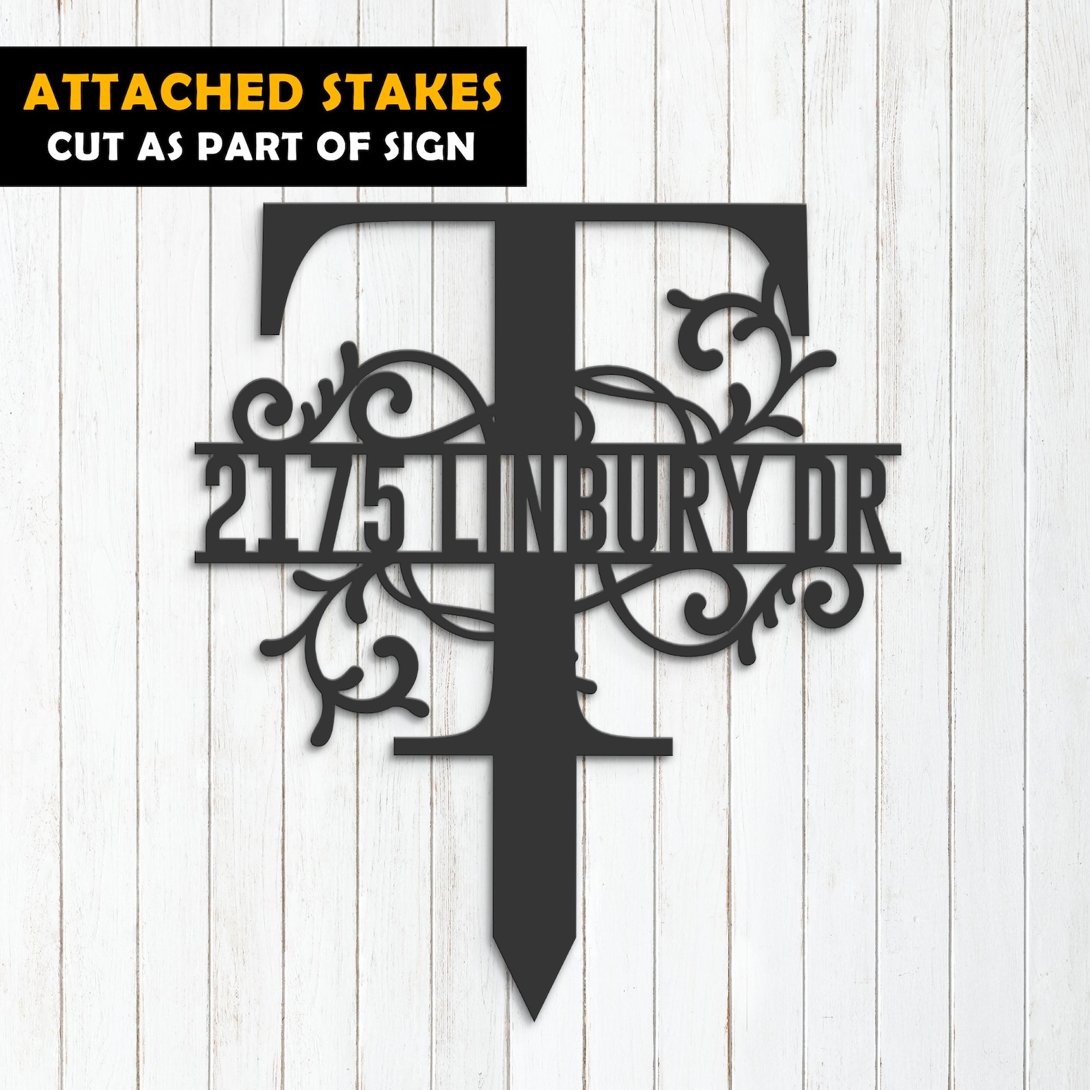 Be the first to review “Floral Monogram T Metal Address Stake”
