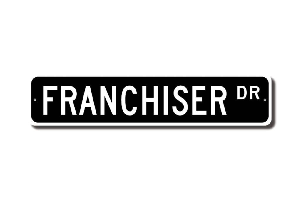 Franchisers check out this awesome street sign! This will make the perfect piece for any Franchiser or maybe you are a Franchiser looking for a cool decor piece. Made of premium aluminum it will stand the test of time. This sign will look great in any room, home den, cave, or office! Get this sign for your favorite Franchiser !