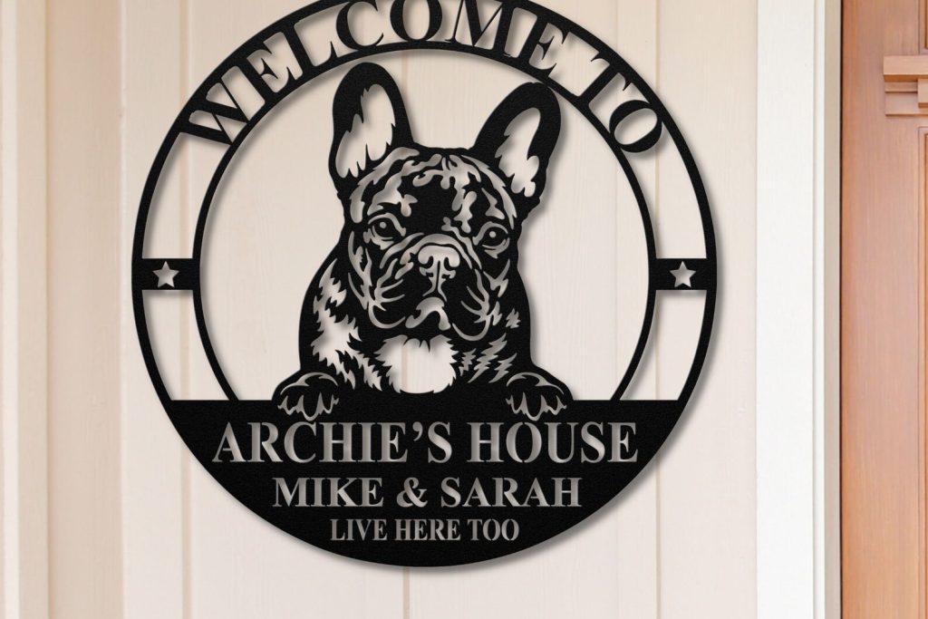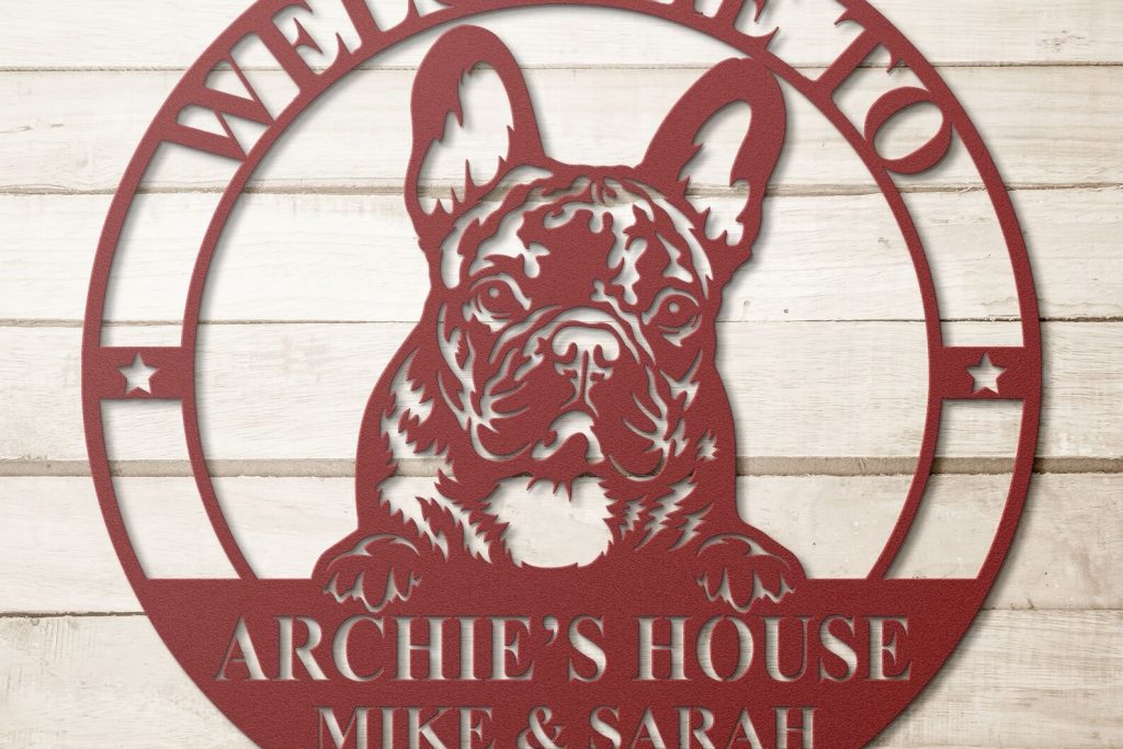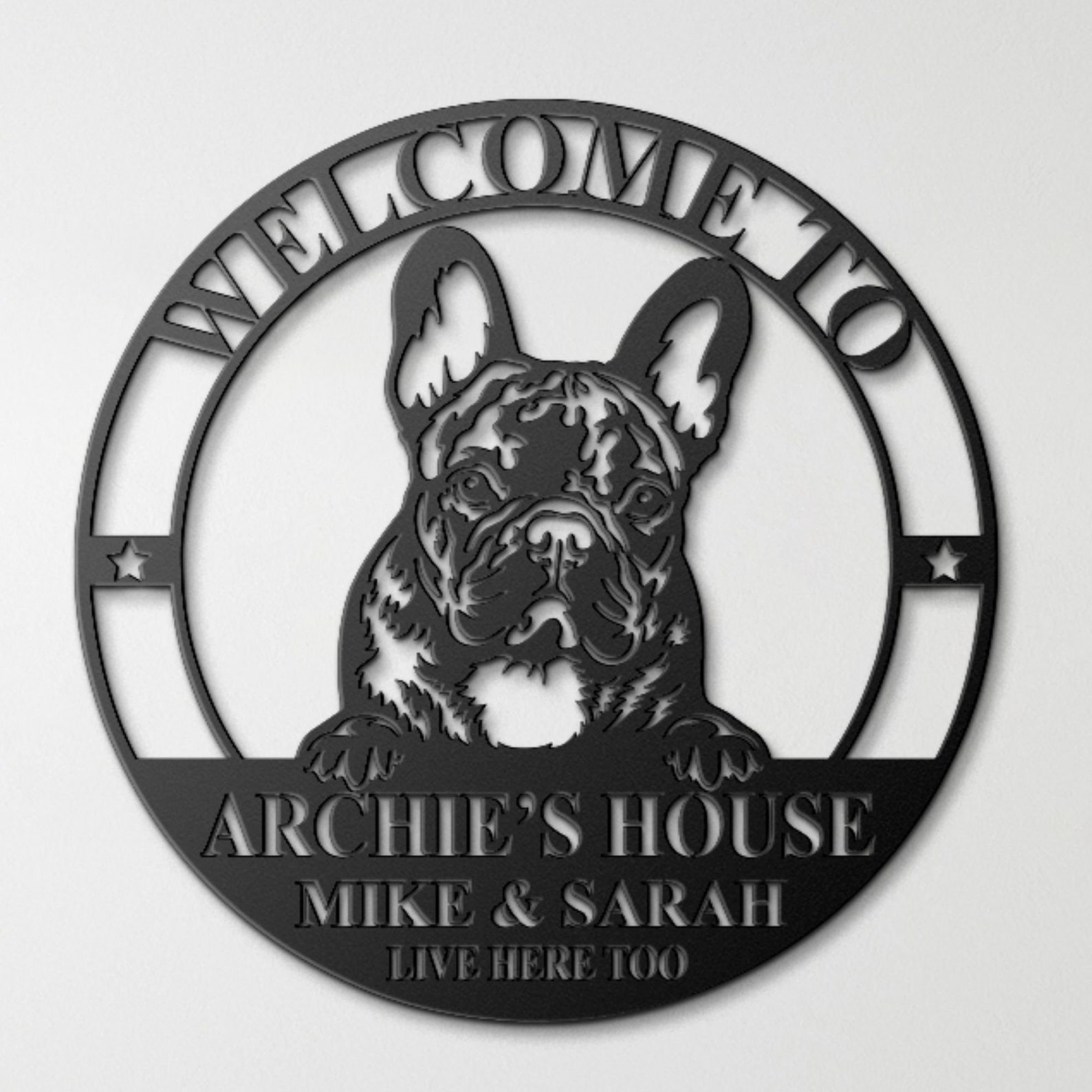 Welcome guests to your home with this stunning French Bulldog Welcome Metal Sign.
