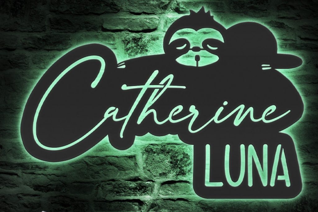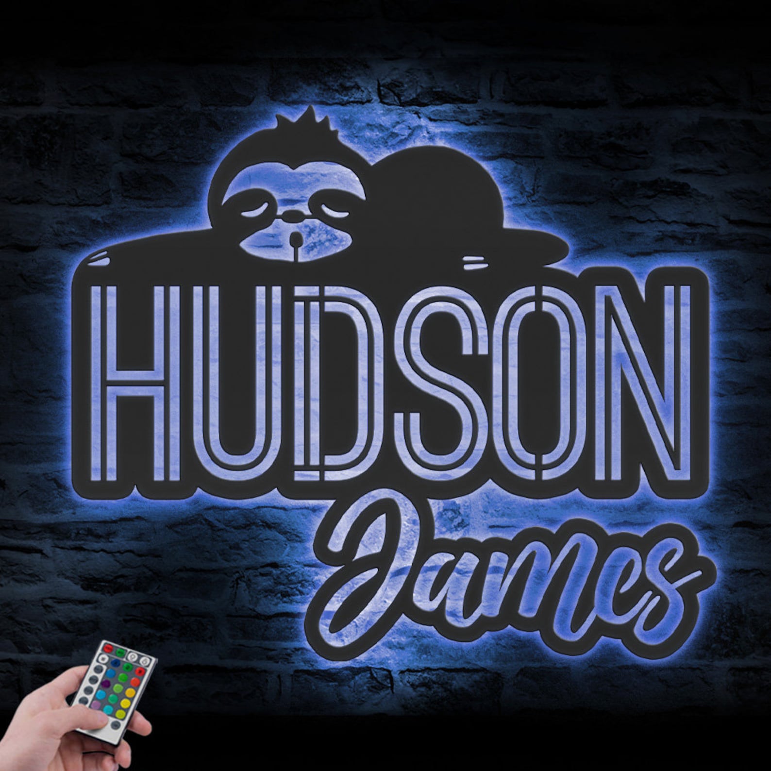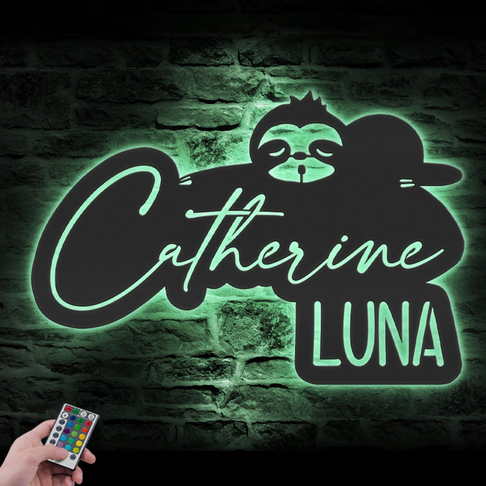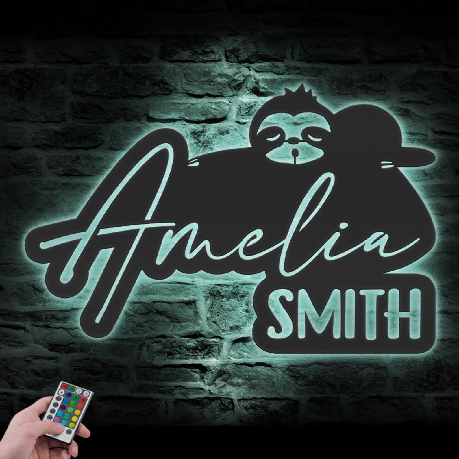 Be the first to review “Funny Sloth Metal Wall Art with LED – Personalized Name Sign”