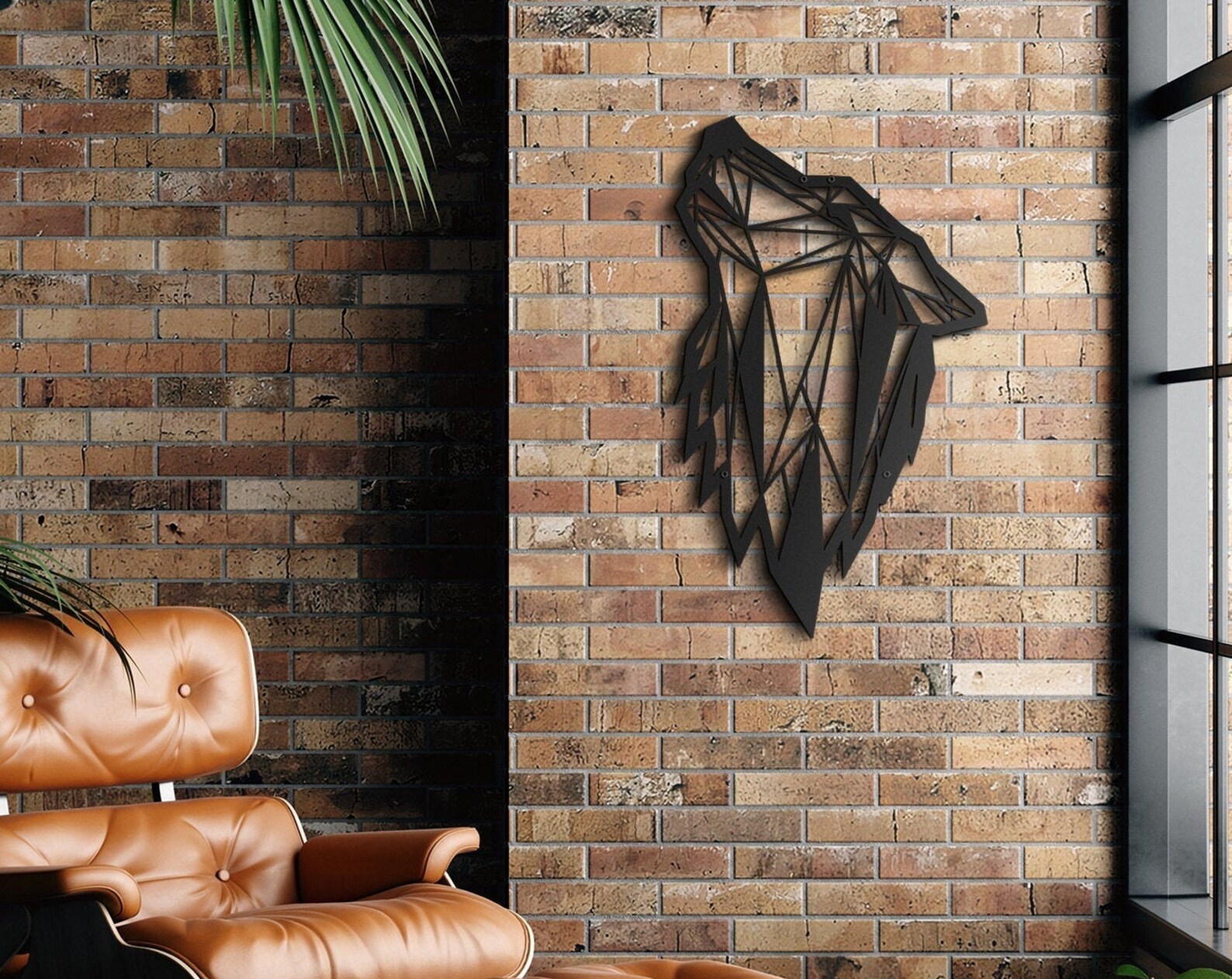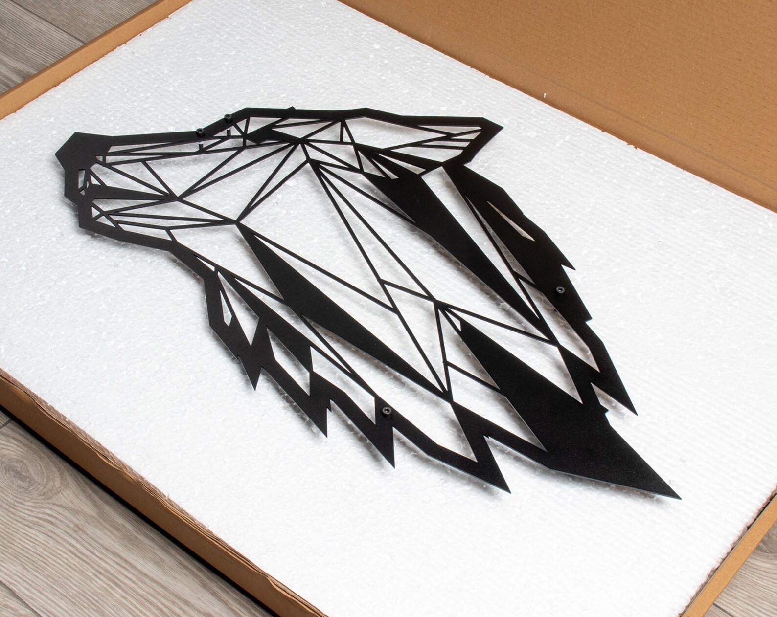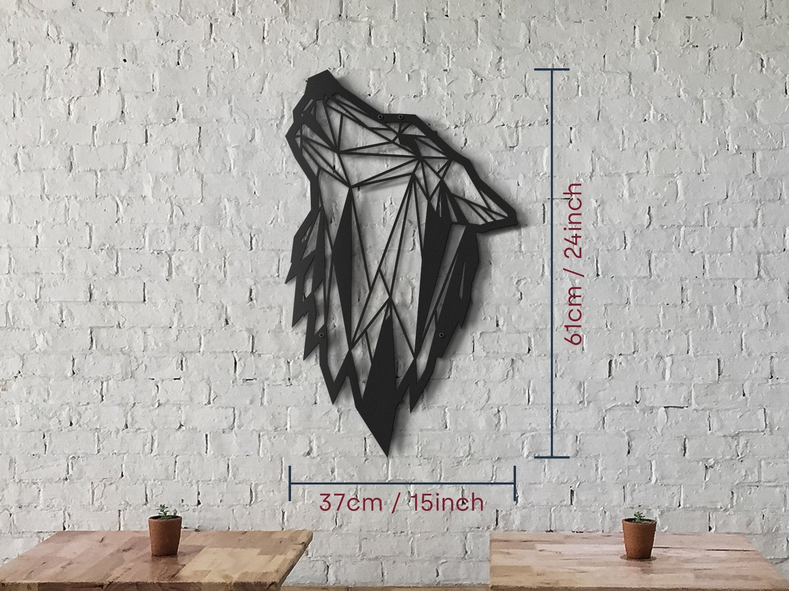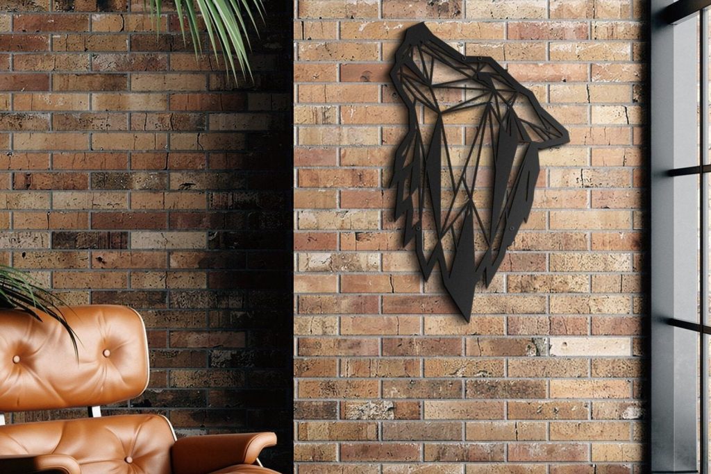 Geometric Wolf Metal Art – Modern Office Decor