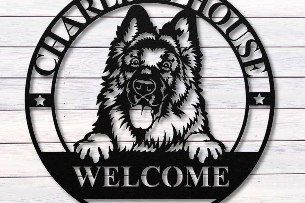 Are you looking for a unique and personalized gift for your dog mom? Look no further than our German Shepherd Metal Dog Welcome Sign.