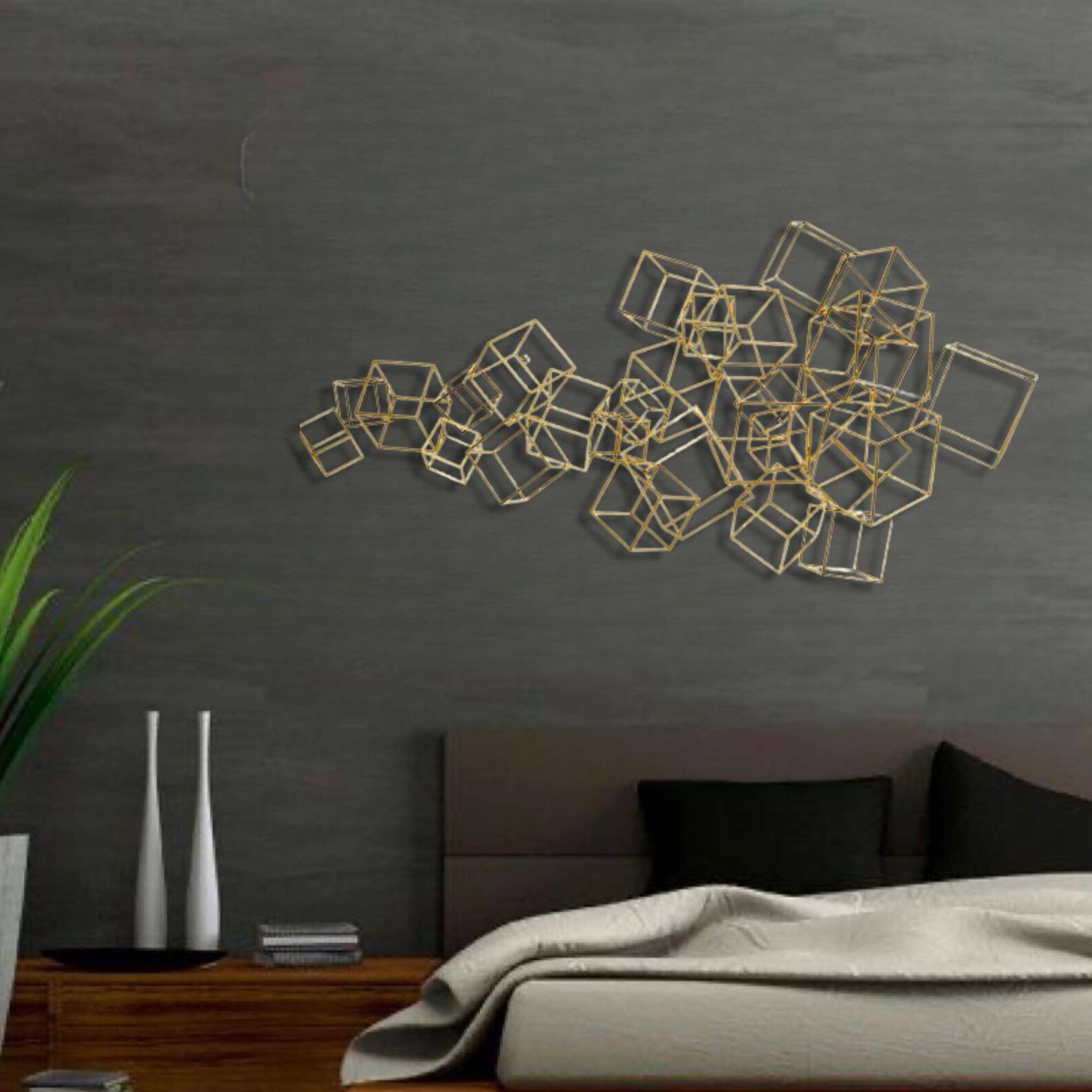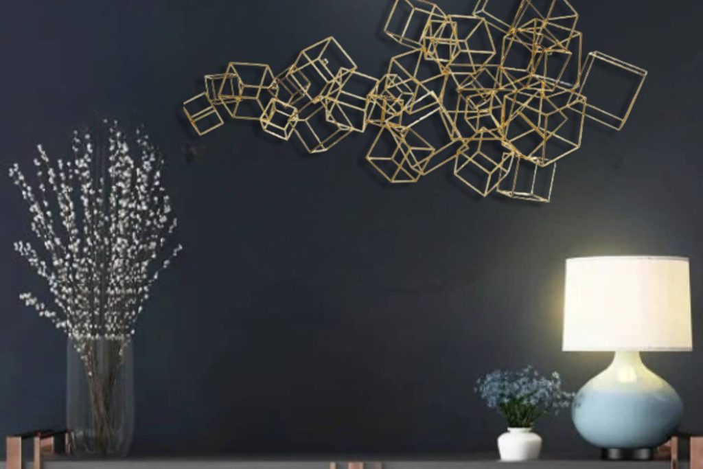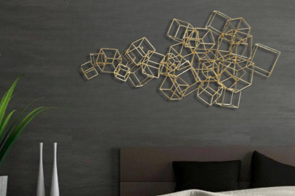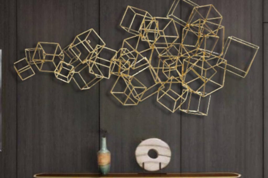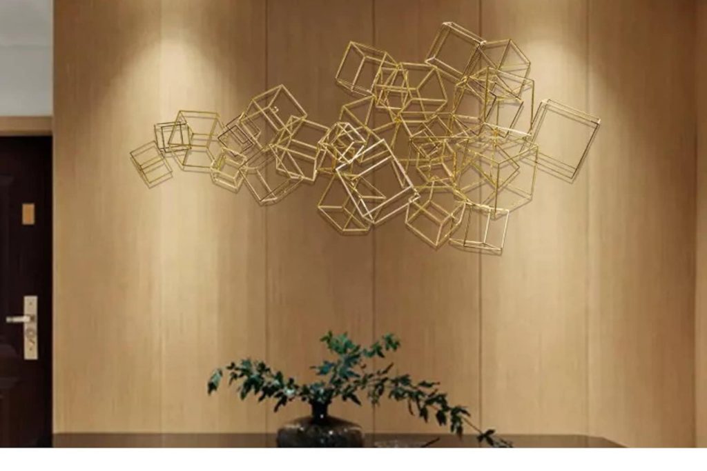 This metal wall art a best gift idea.You may give this metal wall hanging as wall decoration present on many occasion, for example you may bring it to your mother,your new married friend as wedding gift or best friend as housewarming gift who recently buy a new house or who redecorate her home,your corporate gift for your collegue.This design of one of our floral wall decor collection may be named as geometric metal wall decor,metal lines sign for wall decor,metal lines wall art,contemporary metal wall decor,laser cut metal wall hanging,horizontal golden metal wall hanging,golden metal wall decor,luxury wall decor,magnifique wall hanging,over bed wall hanging, over dreasuar wall hanging,bedroom wall hanging,living room wall decor,cubes sign for wall,metal cubes for wall, golden metal cube sculpture for wall, metal cubes wall hanging,golden metal cubes design wall decor,