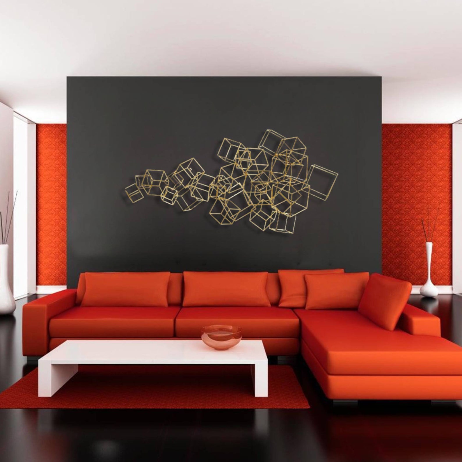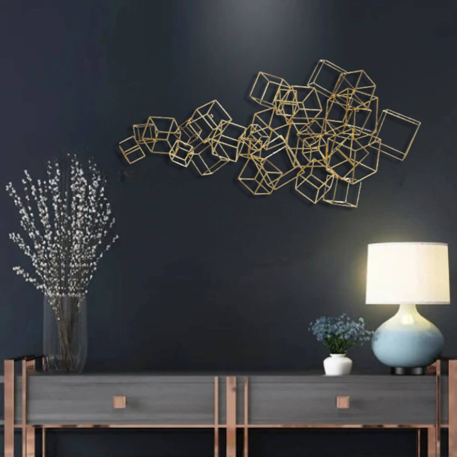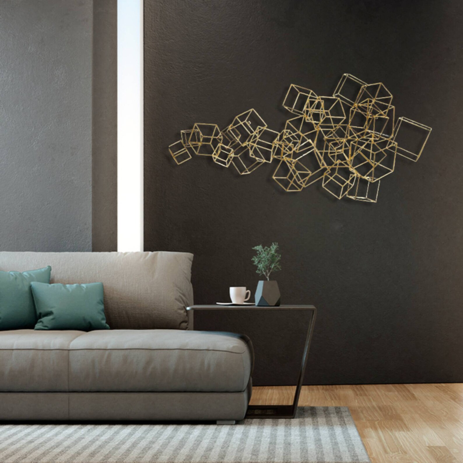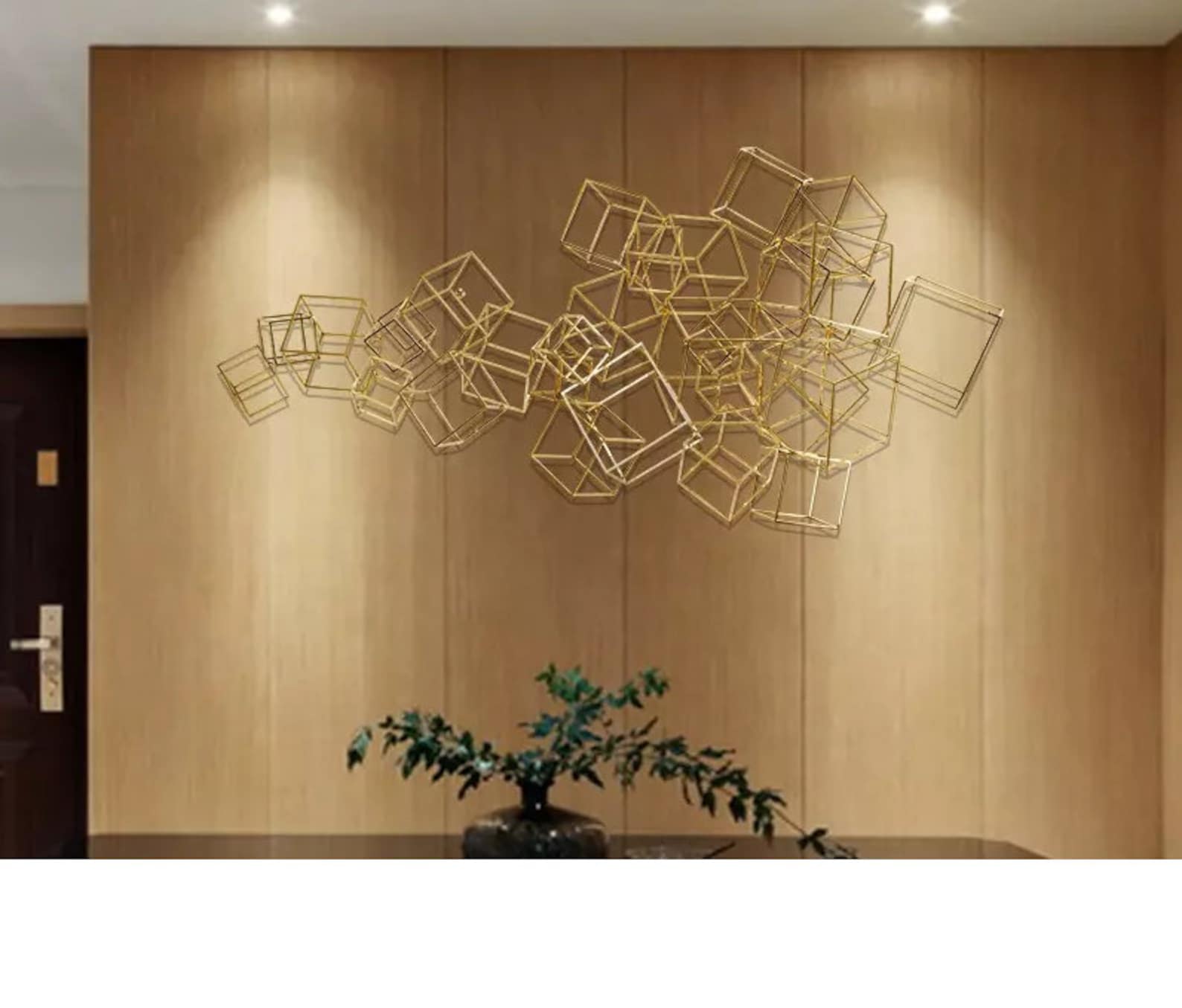 This metal wall art a best gift idea.You may give this metal wall hanging as wall decoration present on many occasion, for example you may bring it to your mother,your new married friend as wedding gift or best friend as housewarming gift who recently buy a new house or who redecorate her home,your corporate gift for your collegue.This design of one of our floral wall decor collection may be named as geometric metal wall decor,metal lines sign for wall decor,metal lines wall art,contemporary metal wall decor,laser cut metal wall hanging,horizontal golden metal wall hanging,golden metal wall decor,luxury wall decor,magnifique wall hanging,over bed wall hanging, over dreasuar wall hanging,bedroom wall hanging,living room wall decor,cubes sign for wall,metal cubes for wall, golden metal cube sculpture for wall, metal cubes wall hanging,golden metal cubes design wall decor,