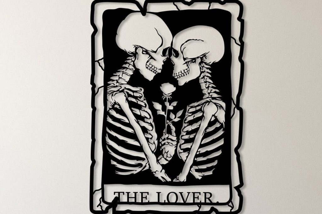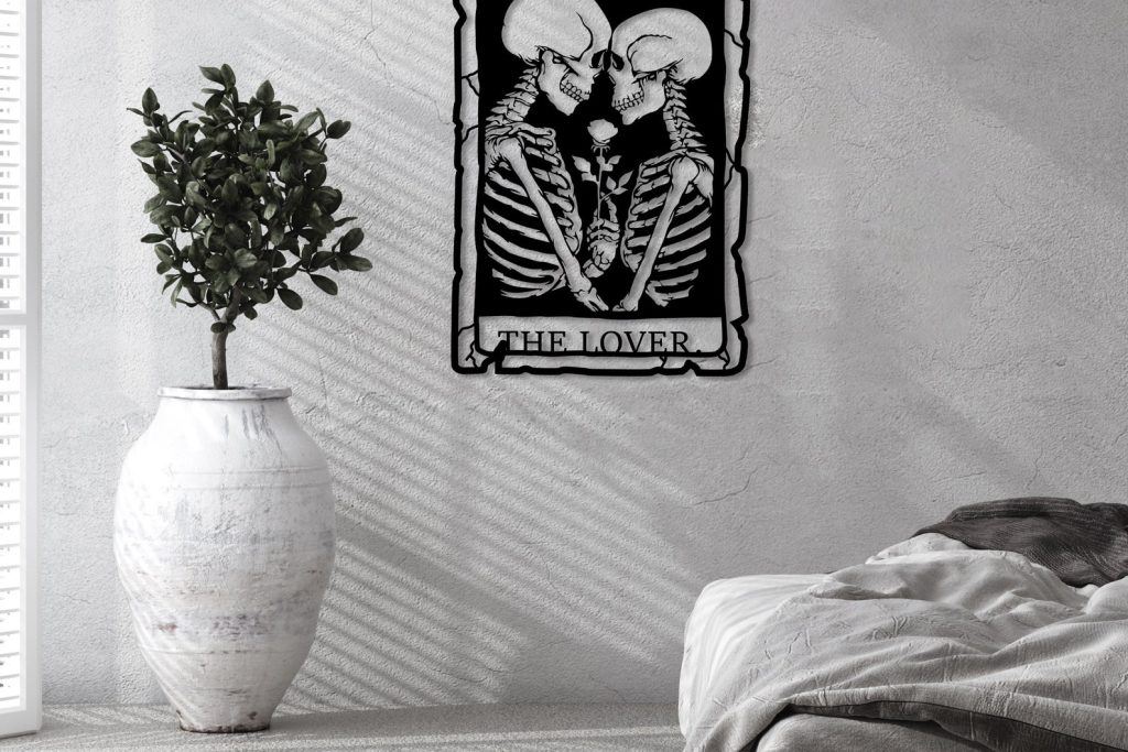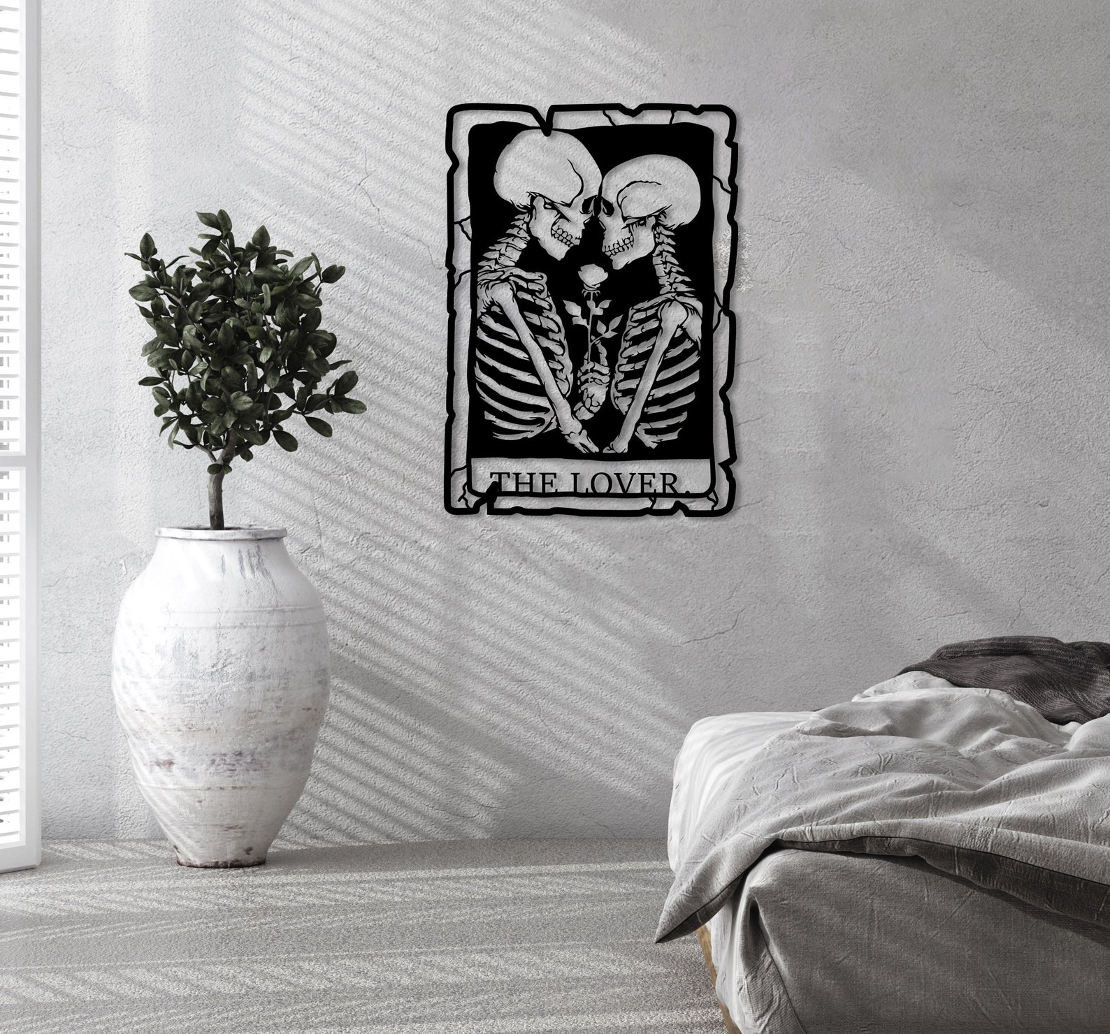 Gothic Skeleton Couple Metal Wall Art, Valentines Day Gift for Couple, Unique Bedroom Wall Decor, Skull Lovers Wall Decor, Wedding Gift Decor