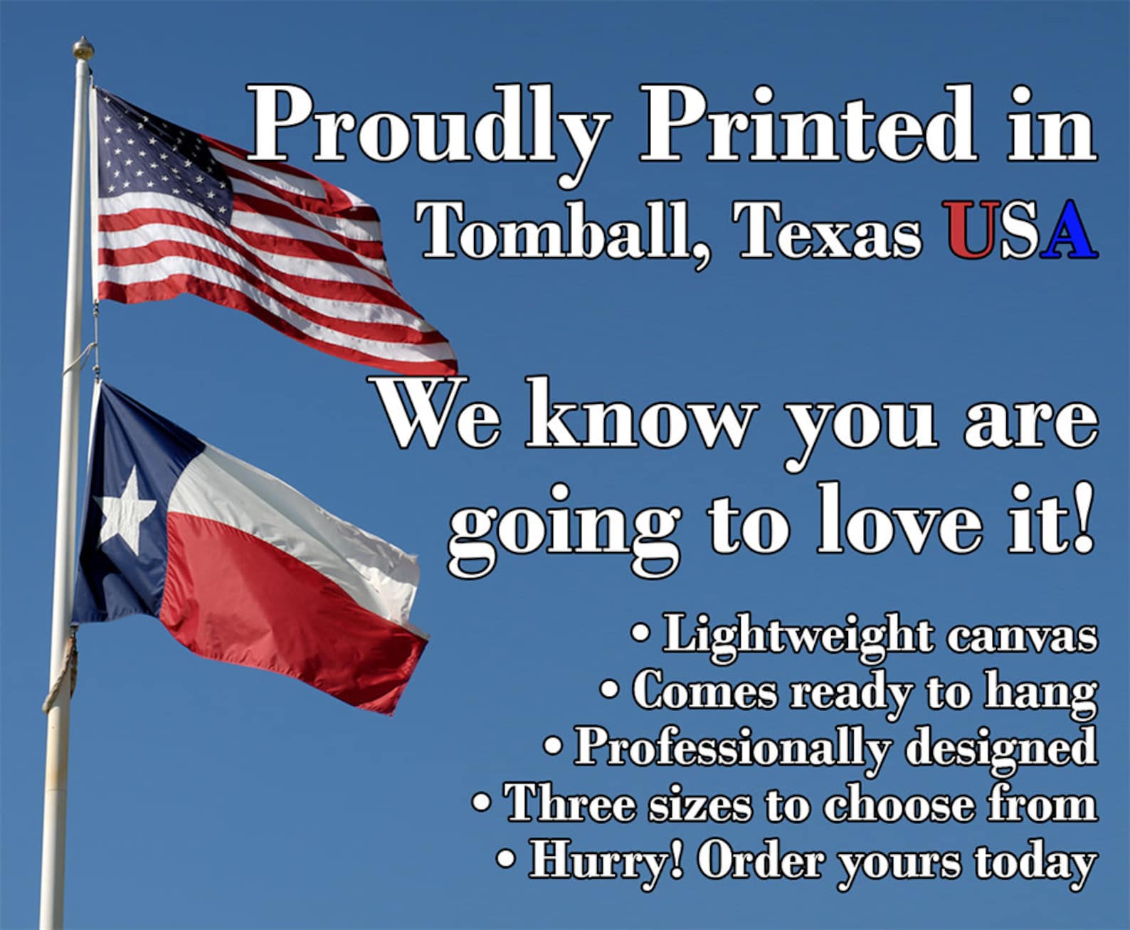MADE IN AMERICA – All our canvas artwork is hand-stretched by our employees in Tomball, Texas. We take pride in doing the work here and doing it right.