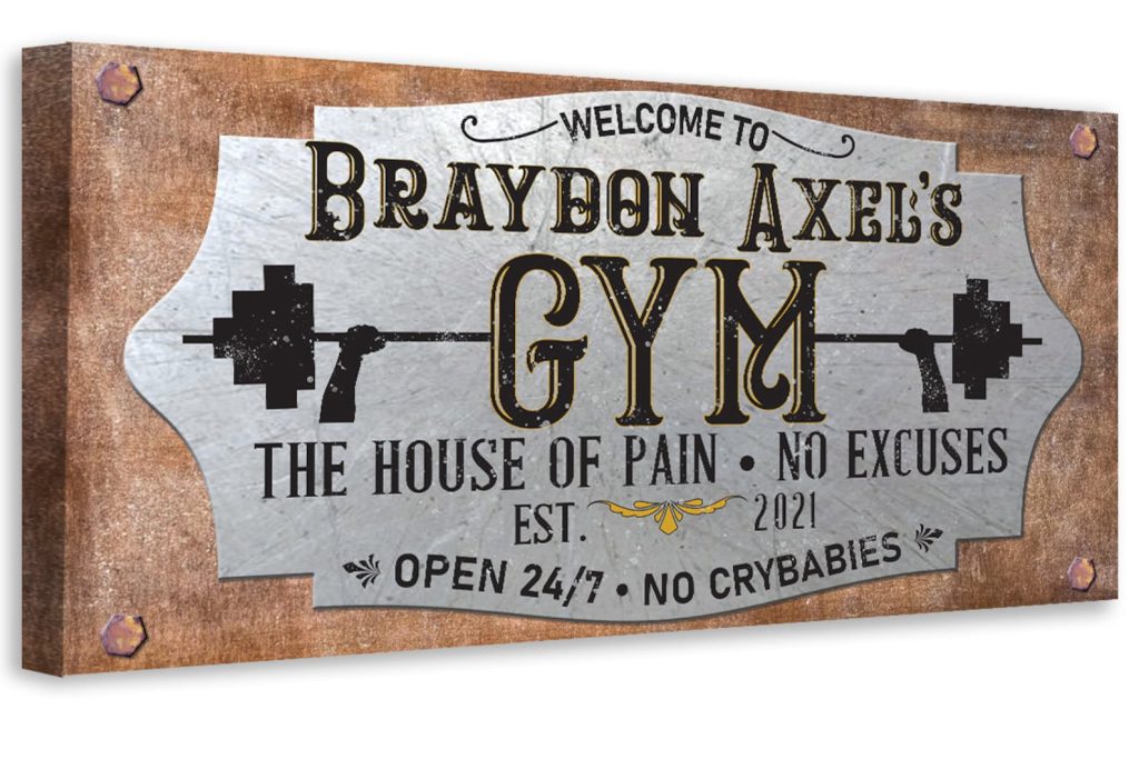 Be the first to review “Gym Canvas Sign – Personalized Large Wood Frame Wall Gift”