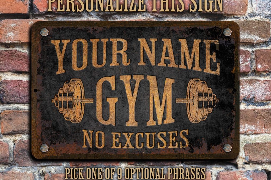 Personalized Home Gym or fitness Center Aluminum Sign | Great Gift Weight Trainers or Athletes | Customize this sign with your first name or last name. Designed with a rugged aged rusty look. Great gift for your workout warrior.