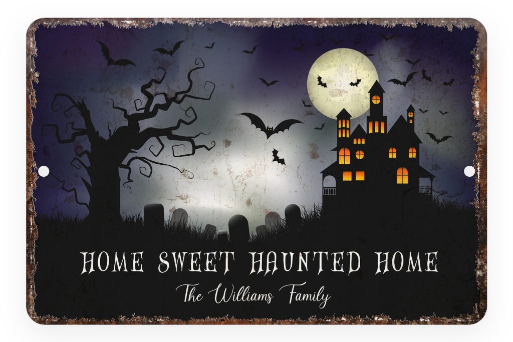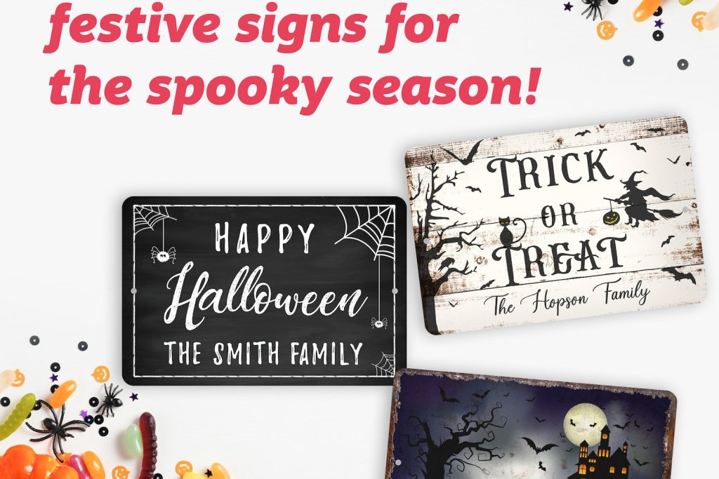 When its time to carve jack olanterns and plan your costume party, make sure your home is in the holiday spirit with fun and spooky wall signs exclusively from Pattern Pop. This sturdy aluminum sign is hand pressed right here in the USA and personalized just for you, giving you high-quality home decor that shows off your personality without having to wait months for it to be shipped from overseas. And with the custom personalization, these signs are a wonderful gift for anyone who loves anything spooky.
