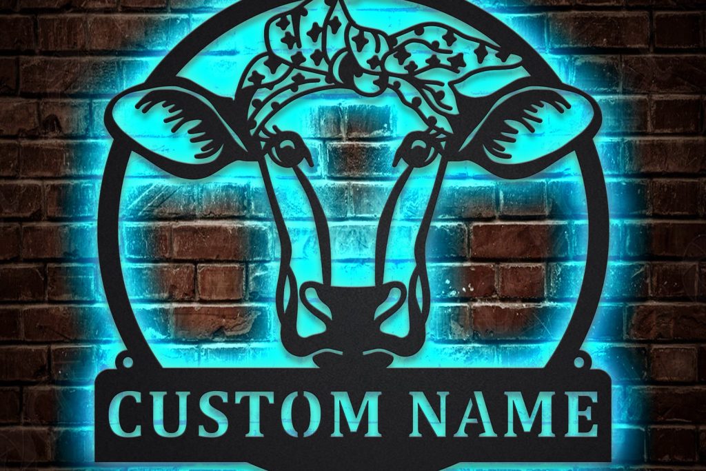 Be the first to review “Heifer Cow Metal Sign with LED – Farmhouse Decor”