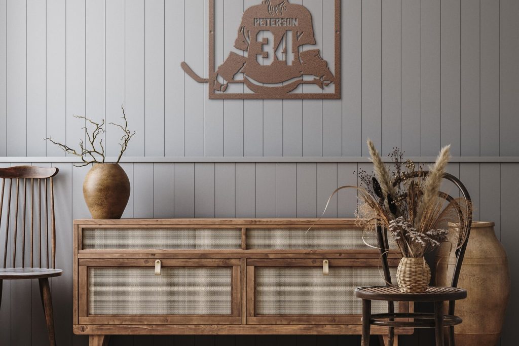 Elevate your home decor with this beautiful custom hockey jersey metal sign!