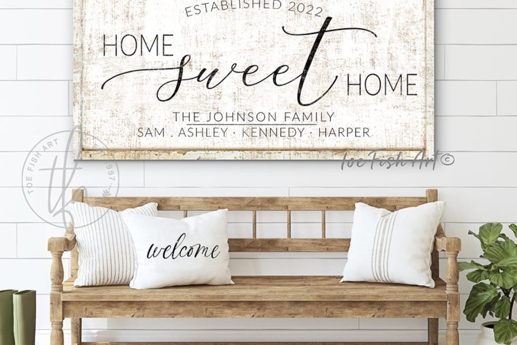 Home Sweet Home Sign, Personalized Family Name, Modern Farmhouse Decor