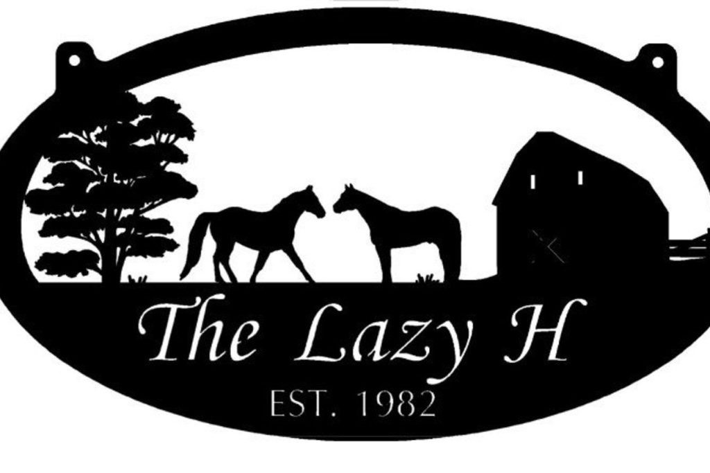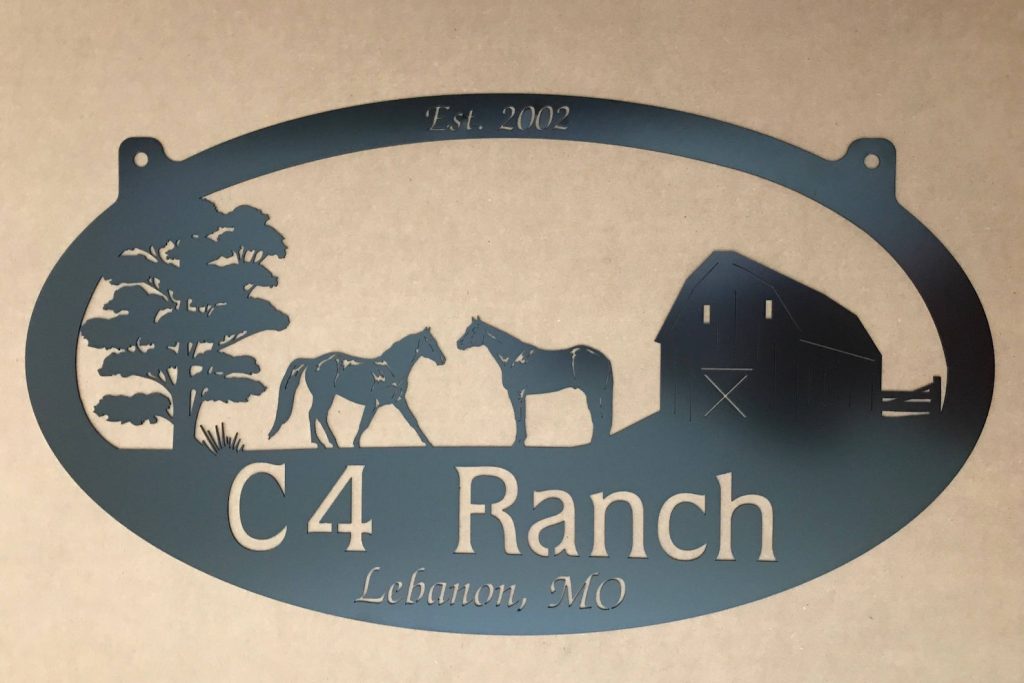 Rustic, personalized metal sign with barn and horses scene . Measures 32" x 18", or 36 x 20 or 48"