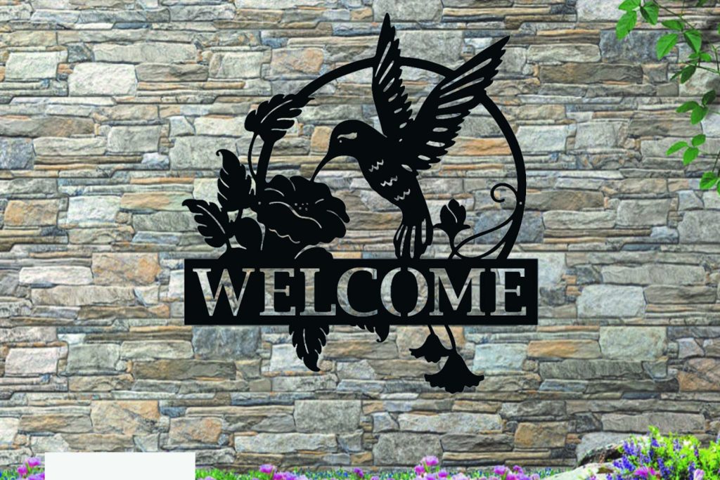 A beautiful Hummingbird welcome sign that you will enjoy for years! This welcome sign is made from 2mm steel and powder coated in black or rustic featuring a hummingbird feeding on a flower. This stylish piece will showcase your love for the garden for generations.