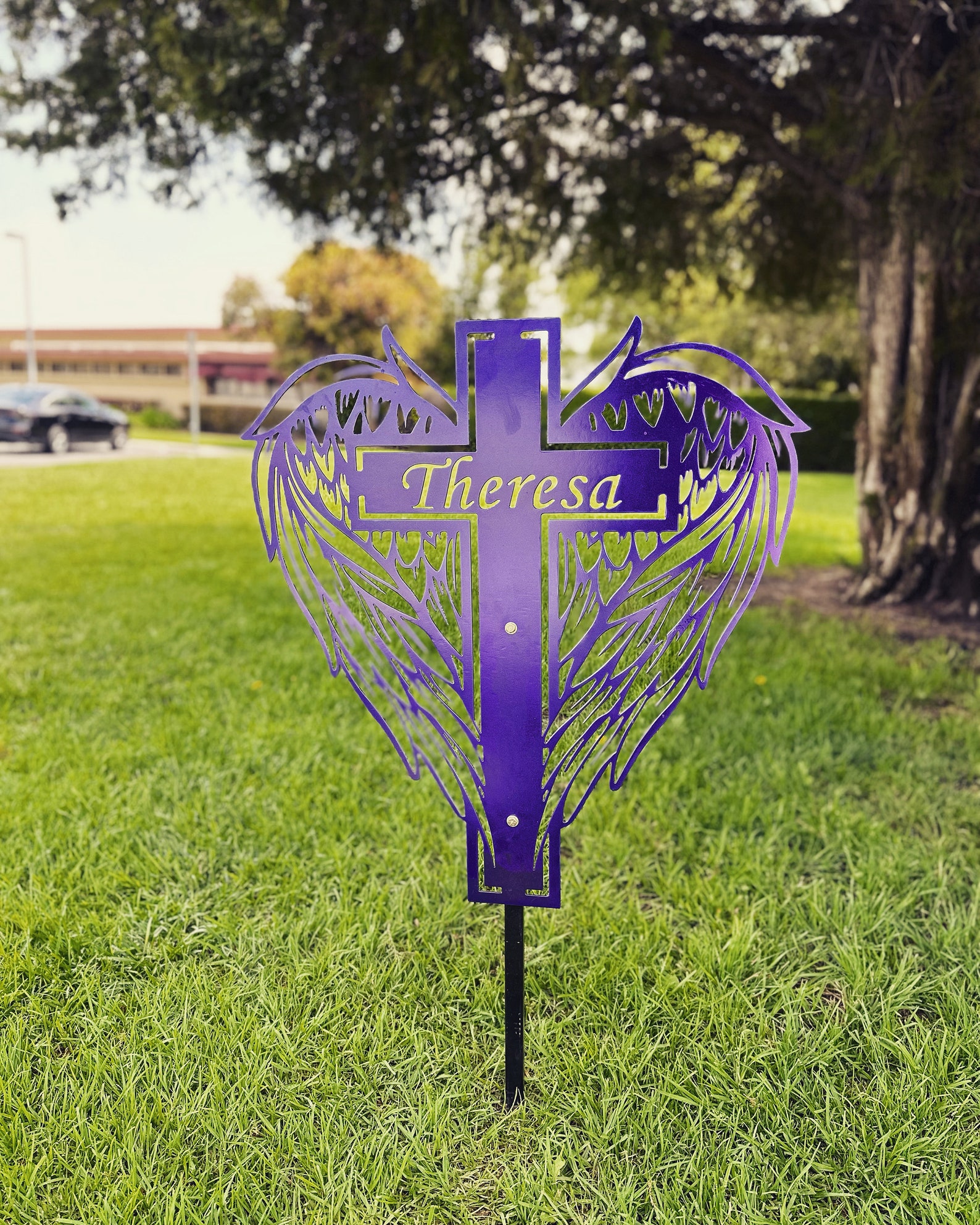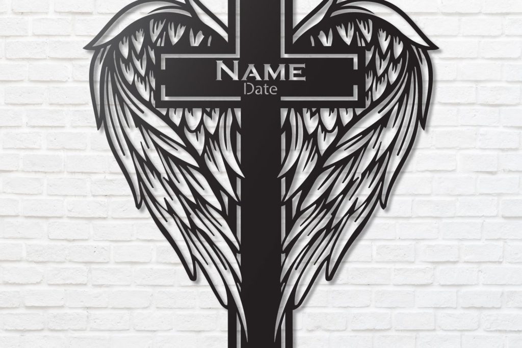Be the first to review “In Memory Metal Wings Cross Sign”