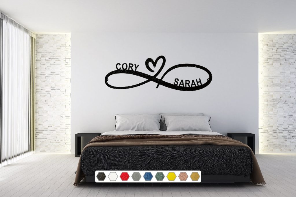 This Modern Infinity Symbol Metal Wall Art has High Personalization and each split letter monogram has its own unique shape, and each customer will have his own particular name.