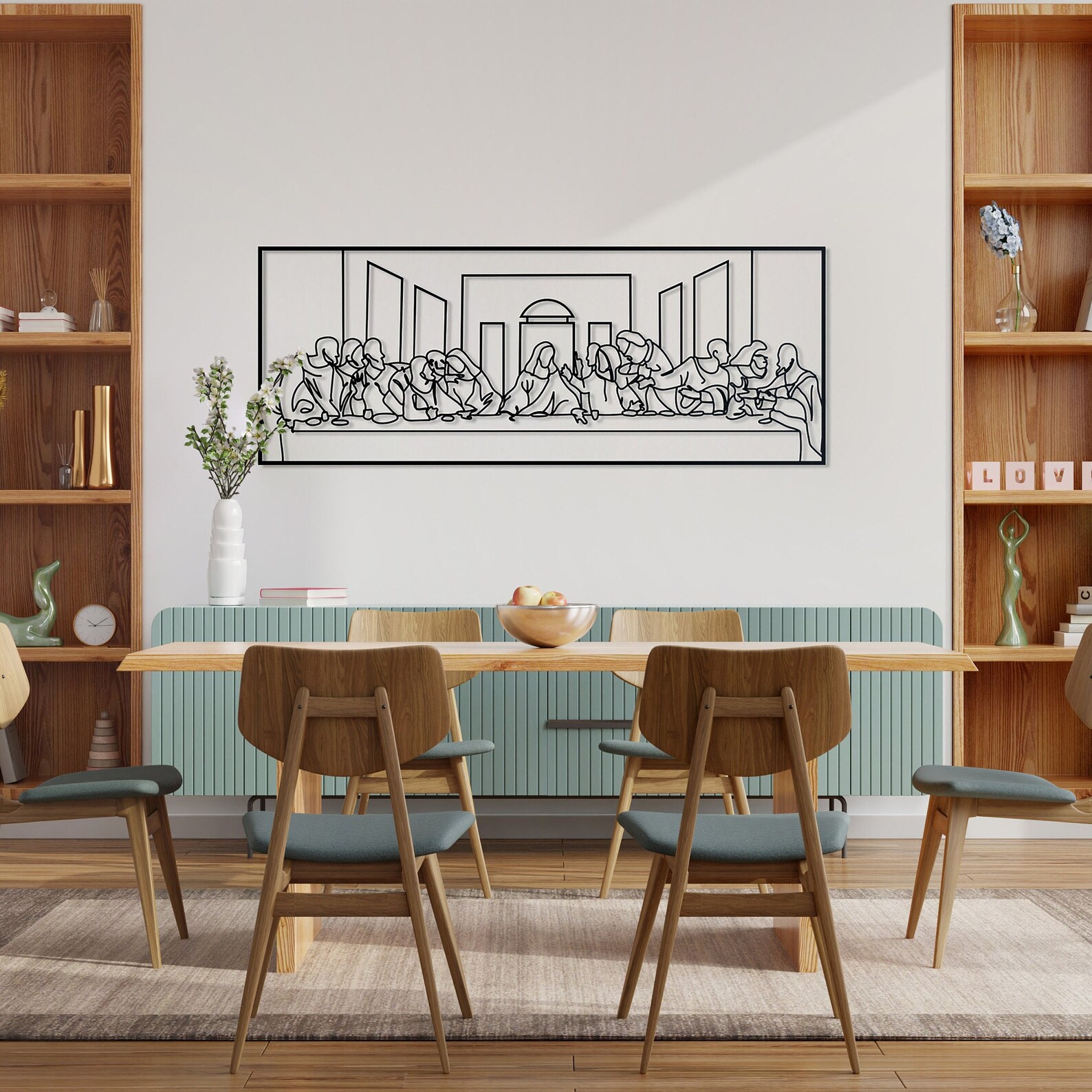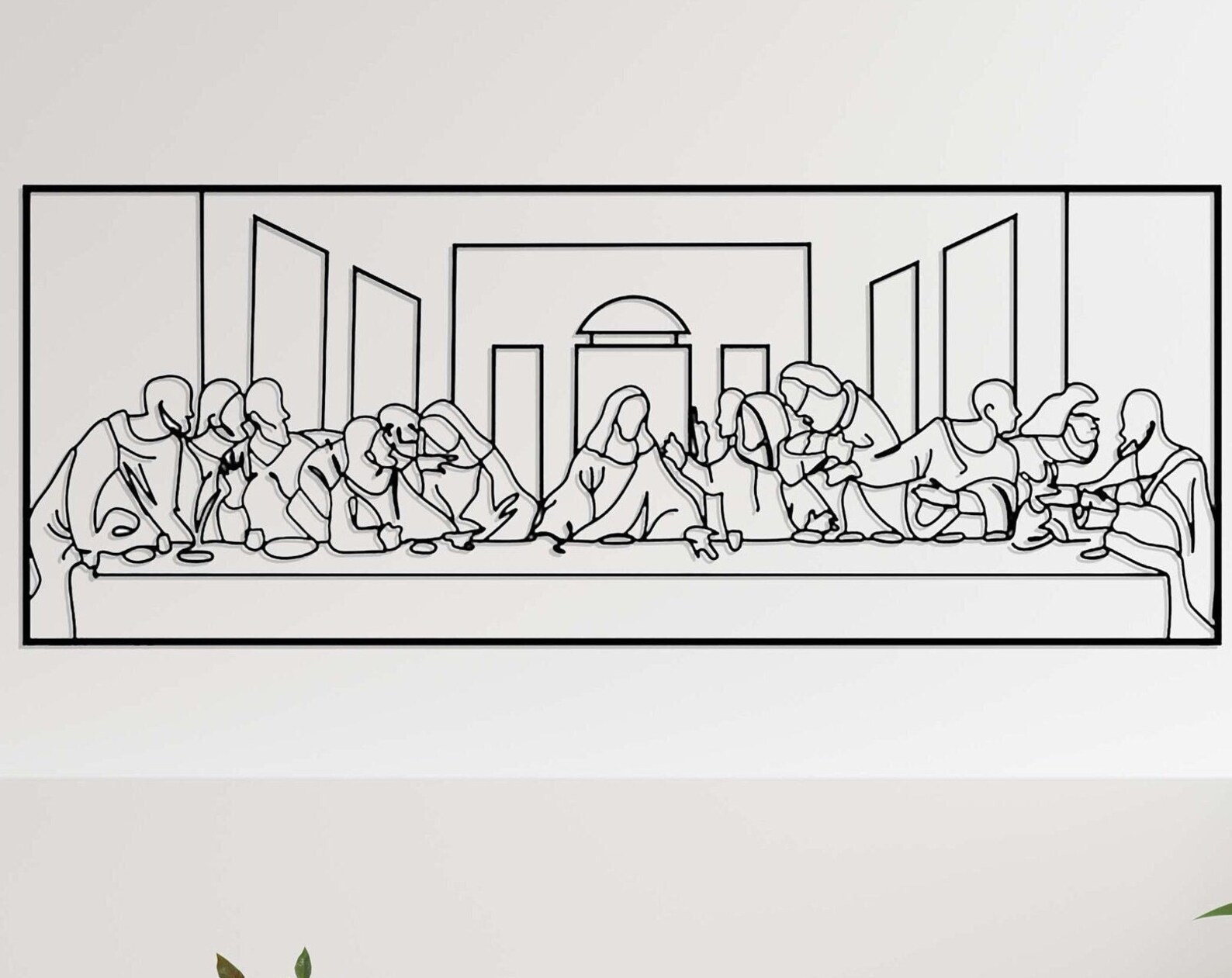 Jesus Last Supper Metal Wall Art by Leonardo Da Vinci Artwork, Religious Decor, Christian Metal Gift, Jesus Line Art, Christian Home Decor