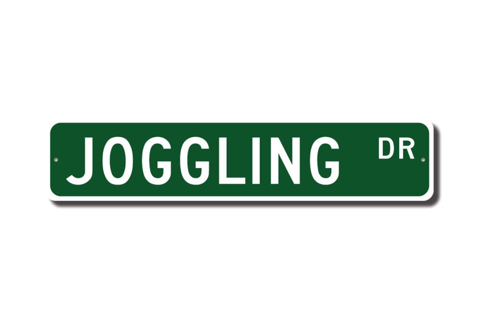 Joggling lovers check out this awesome street sign! This will make the perfect piece for any Joggling fan, or maybe you are a Joggling lover looking for a cool decor piece ! Made of premium aluminum it will stand the test of time. This sign will look great in any room, home den, cave, or office ! Get this sign for your favorite Joggling aficionado !
