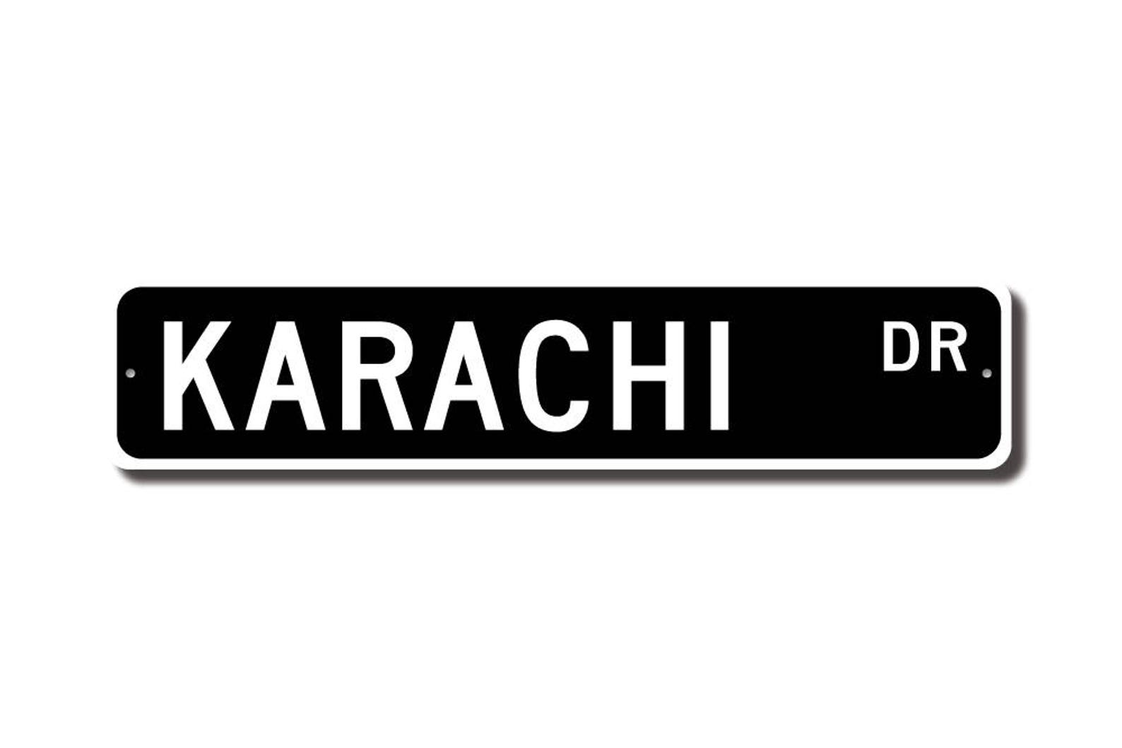 Karachi lovers check out this awesome street sign! This will make the perfect piece for any Karachi traveler, or maybe you are a Karachi native looking for a cool decor piece ! Made of premium aluminum -it will stand the test of time. This sign will look great in any room, home den, man cave, or office! Get this sign to commemorate your trip to Karachi !