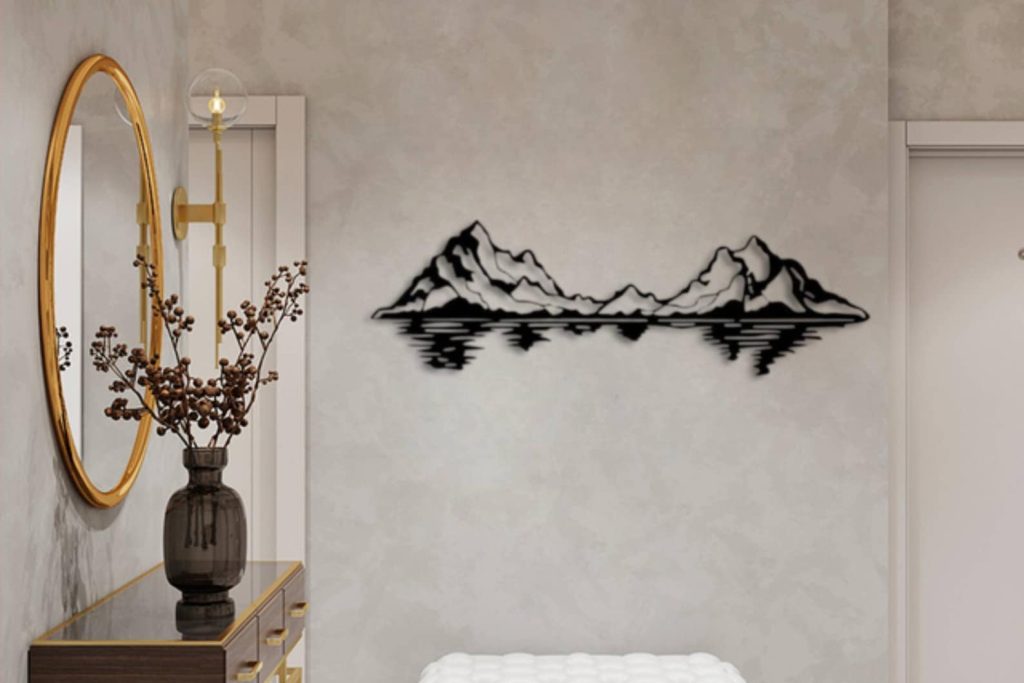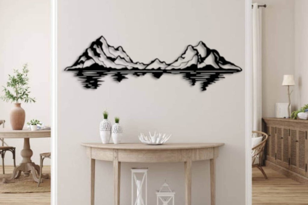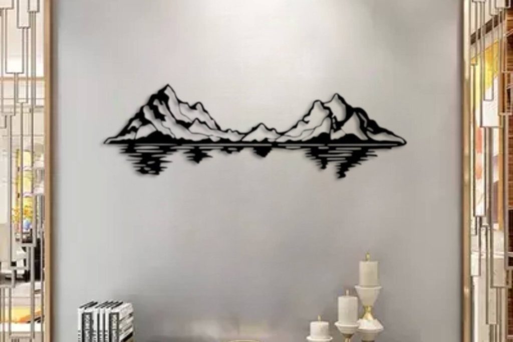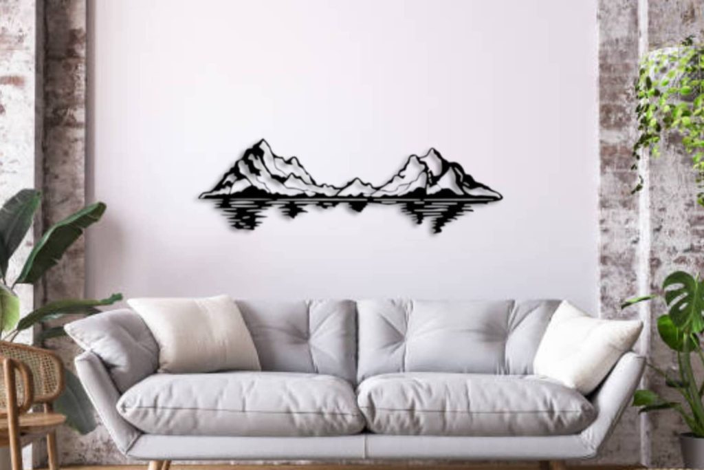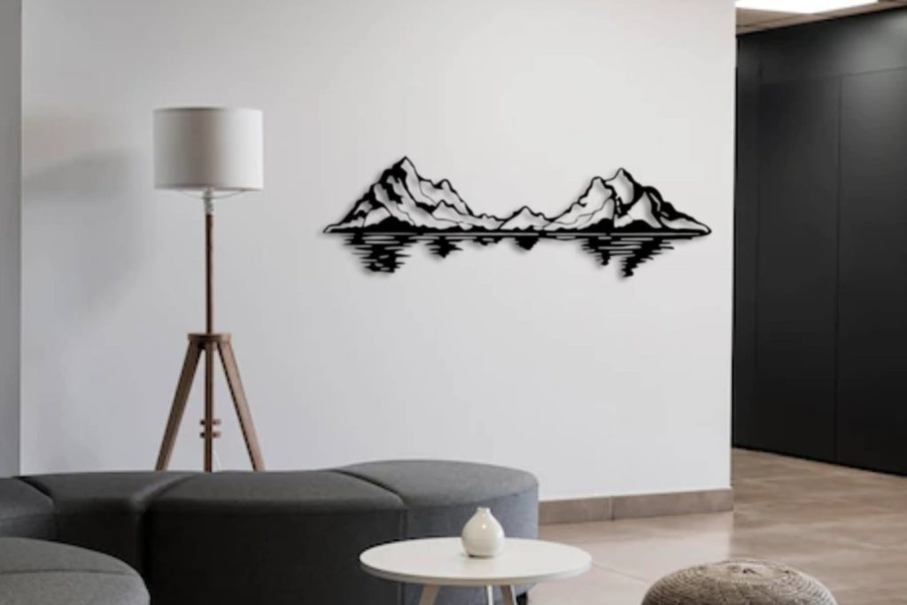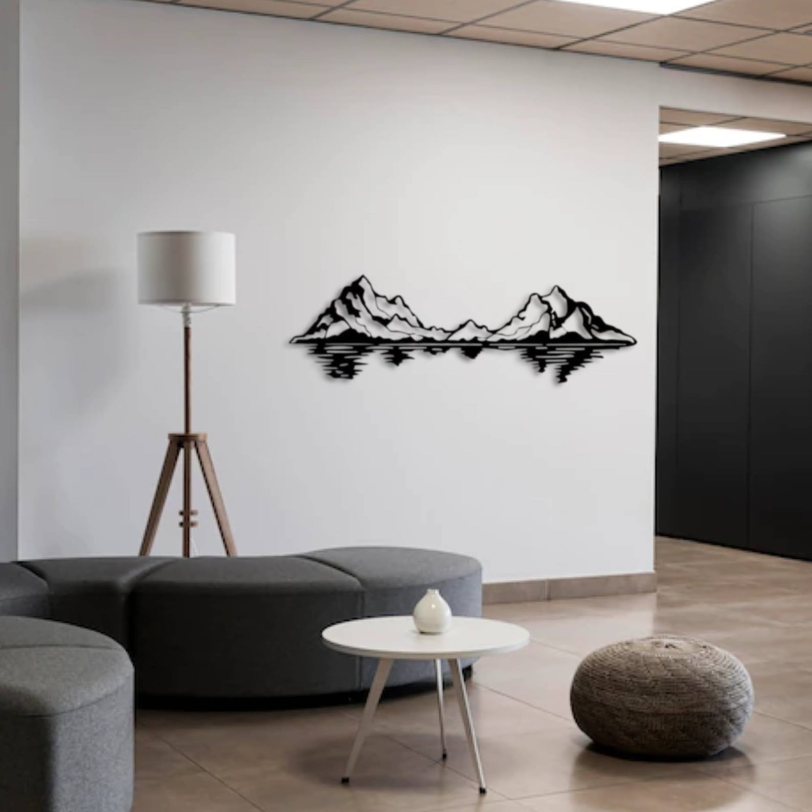 Be the first to review “Large Mountain Metal Wall Sculpture – Farmhouse Decor”