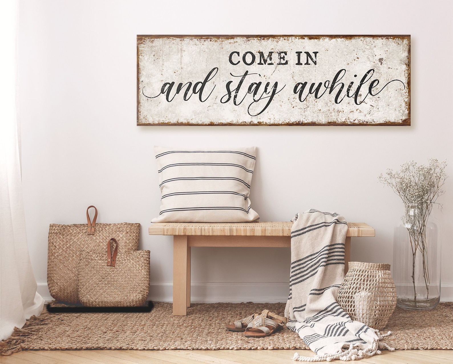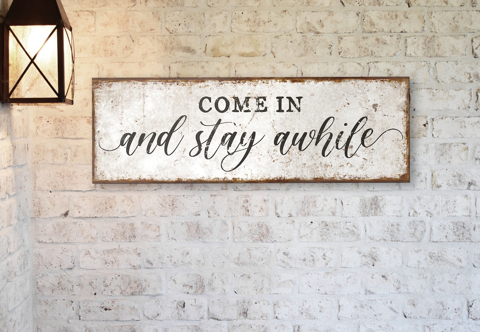 Come In AndtLarge OutdoortWall Art EntrywaytDecor Metal FronttPorch Signs WelcometSign Front DoortModern FarmhousetDoor HangertWhite Black WoodtCanvas Family RustictVintage Chic ShabbytPrimitive FrancetStay Awhile French