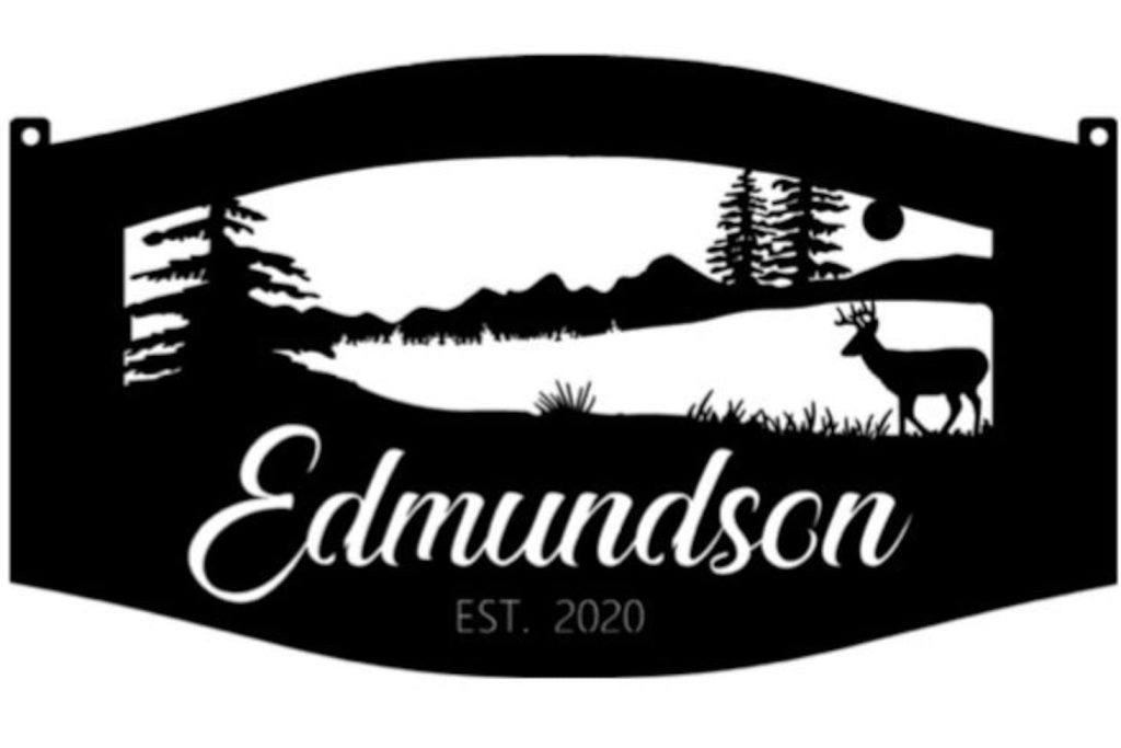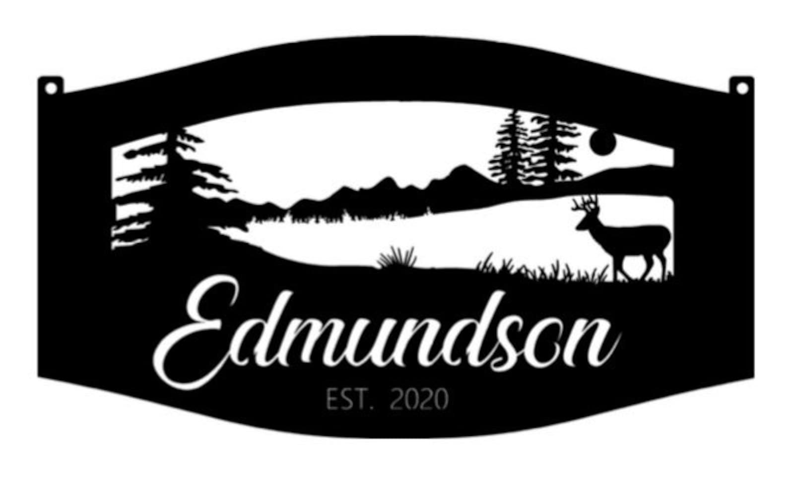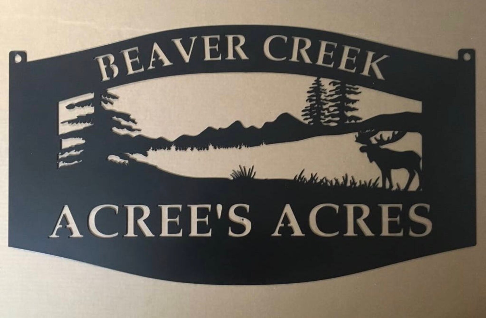 Rustic, metal sign . Measures 39; x 20"tall. Powder coated black or beautiful rustic bronzed or copper acid finish and clear coated for a long lasting finish. Makes a very attractice entrance sign.Incl with the price is customizing with your name. PROOF WILL BE SENT TO YOU AFTER PURCHASE FOR YOUR APPROVAL. We will wait 24 hrs before we cut the sign. NOTE! If you order brushed metal, it will rust within a short time since theres no UV block, unlike black which is a solid finish