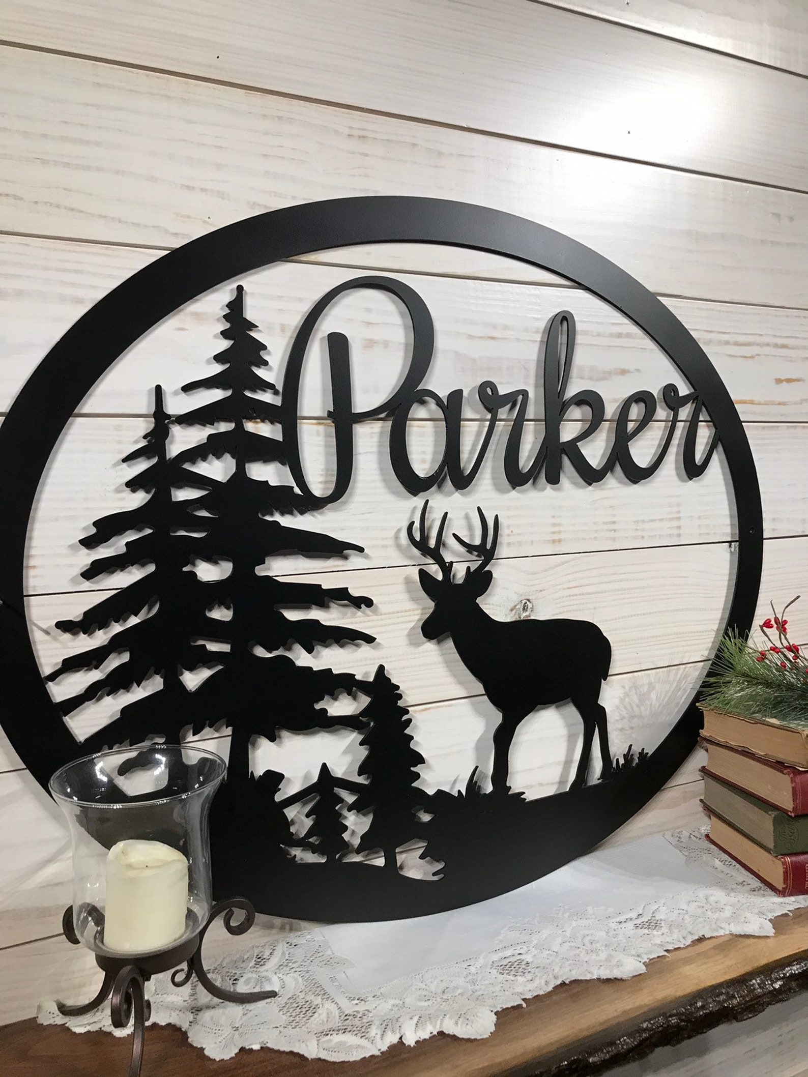 Last Name Signs, Custom Metal Sign, Deer Wall Art, Christmas Gifts for Friends,