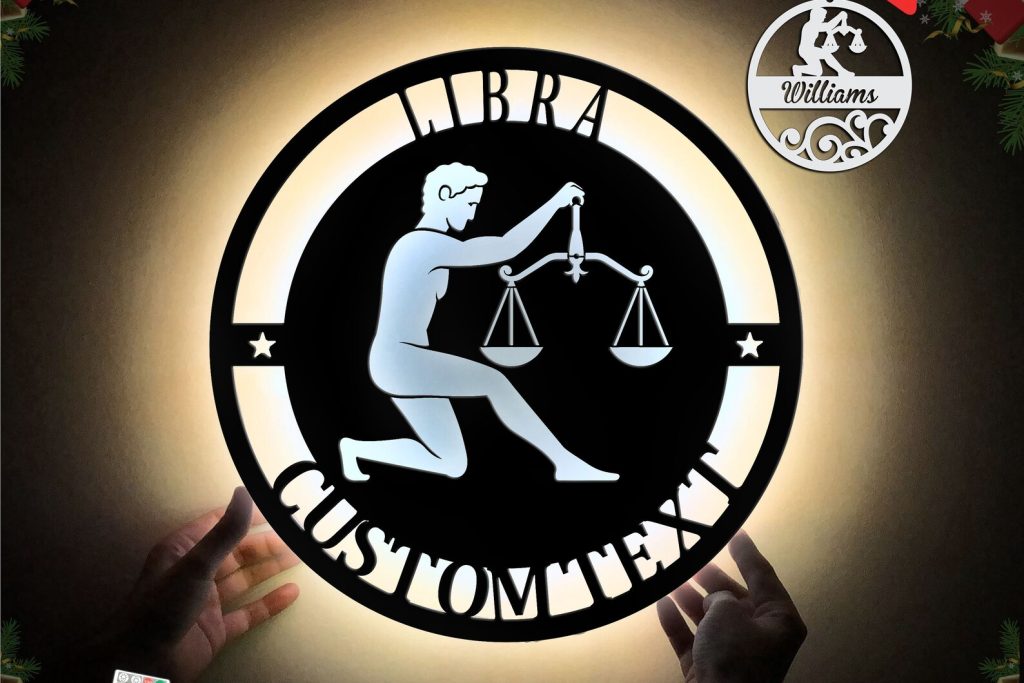 Libra Zodiac Wall Art – Personalized Metal Monogram – Custom Astro Decor Gift