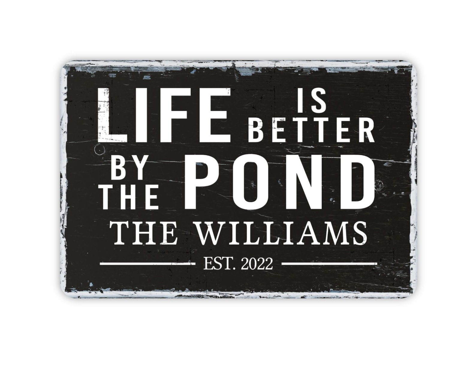 Design: Vintage Style Personalized Life Is Better By The Pond Sign With Est Date