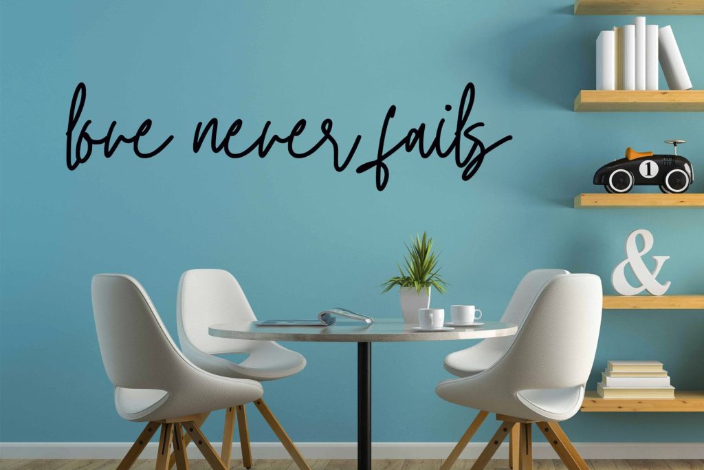 Be the first to review “Love Never Fails Metal Wall Art: Living Room & Nursery Decor”